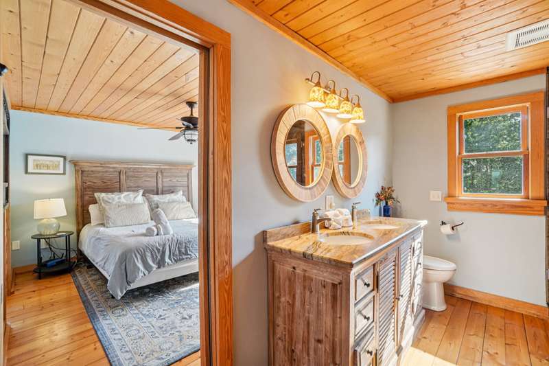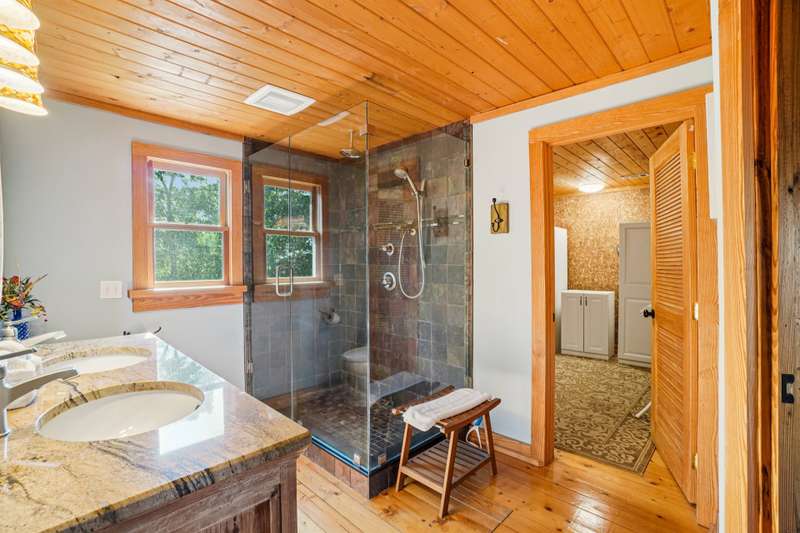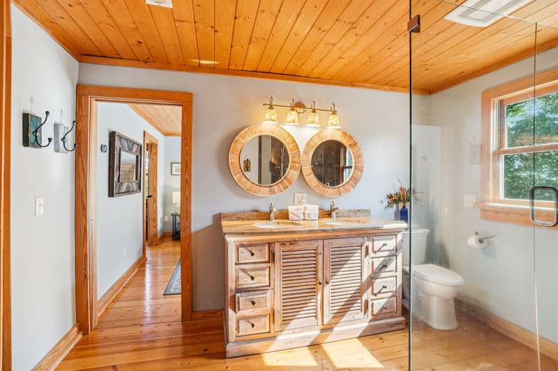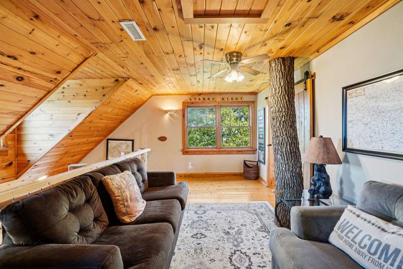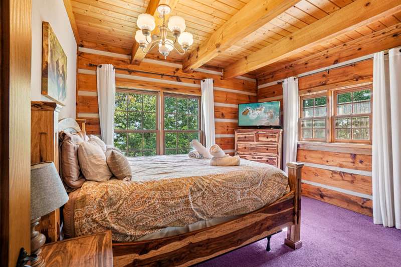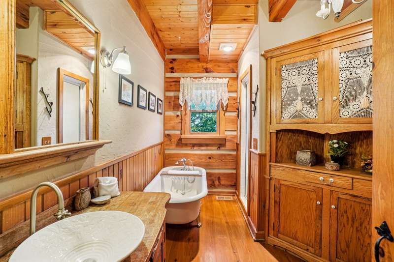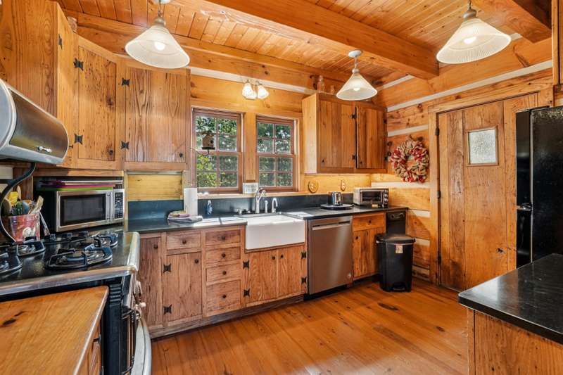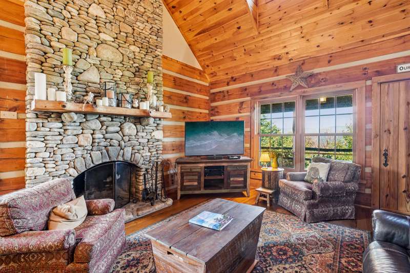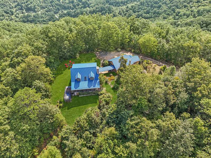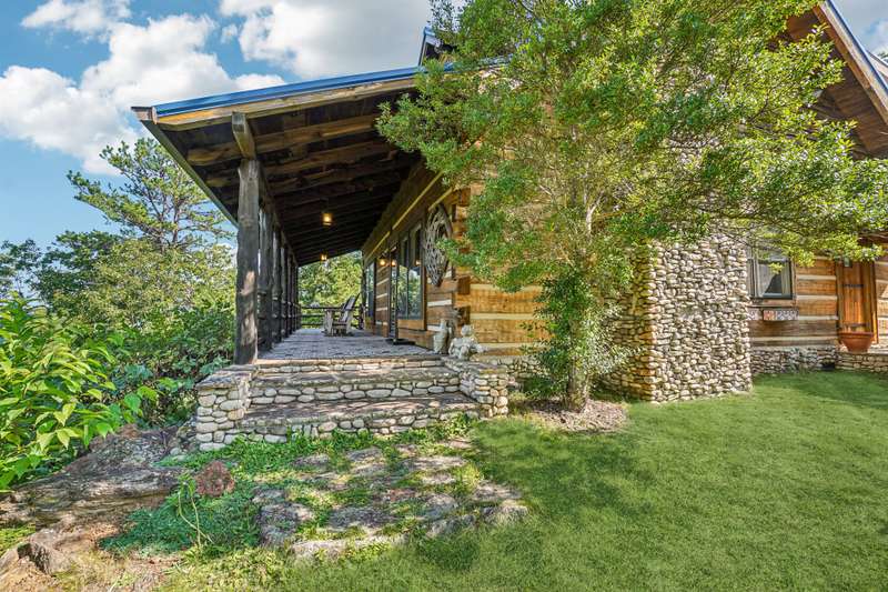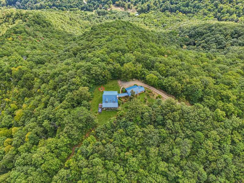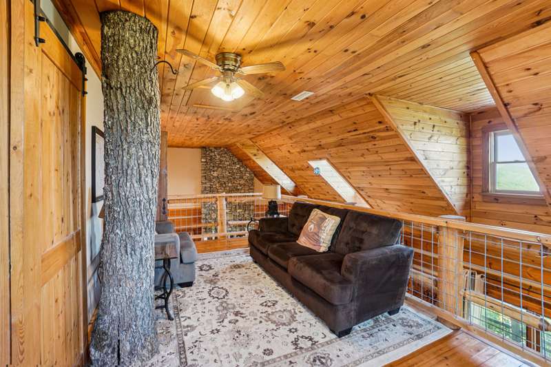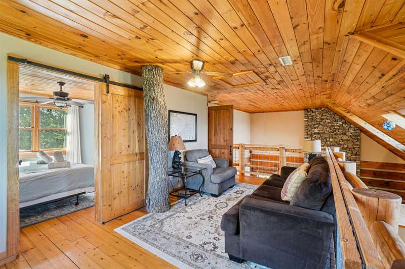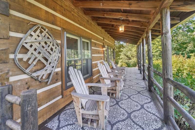 BREATHTAKING 270? VIEWS FROM COLD MOUNTAIN SUMMIT! Extraordinary 3BR/2BA log retreat at 4,600' elevation on nearly 3 FLAT acres - virtually impossible to find at this height! NEW METAL ROOF 2024! Stunning panoramic long-range vistas with gorgeous WEST-FACING VIEWS from covered back porch perfect for sunset watching. Private pond, outdoor firepit, two master suites with soaring ceilings & dramatic floor-to-ceiling stacked stone wood-burning fireplace. Detached heated garage/workshop with wood stove - perfect for hobbies or guest suite conversion. MILES OF HIKING TRAILS right outside your front door connecting to 250 wilderness acres & Pisgah National Forest. COMPLETELY FURNISHED & SHORT-TERM RENTAL READY with proven income history. Your private mountain kingdom awaits!