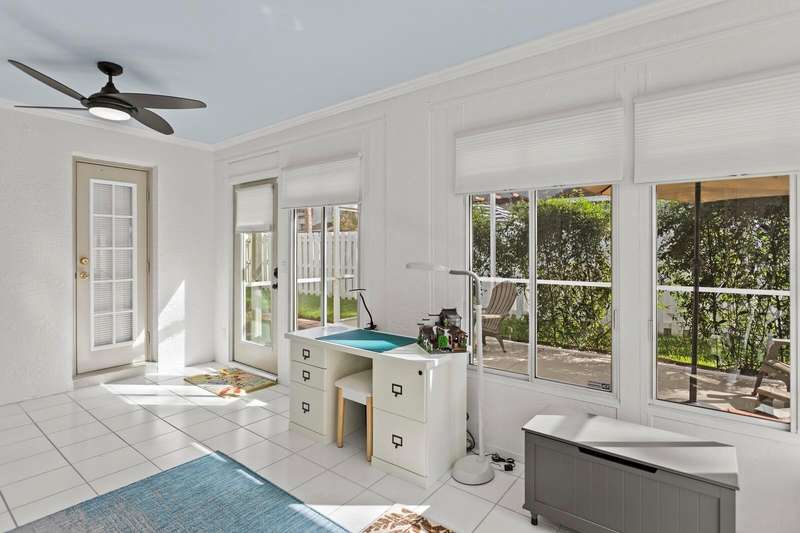 ***** Seller offering $6000 credit toward a new roof****** Welcome to Parkside, one of Hunter’s Green’s most picturesque enclaves, where contemporary design meets thoughtful upgrades throughout this 3-bedroom, 2-bathroom home. Nestled on a quiet street with fresh exterior paint (2023), new windows (2023), and new fencing (2024), this home exudes exceptional curb appeal and pride of ownership. The minute you step inside you'll know this home is different. Living made easy with sleek tile flooring in all main areas and the added upgrade of waterproof luxury vinyl plank flooring in the bedrooms and bathrooms (2024). The formal dining room is accented with classic wainscoting, and the family room features built-in cabinetry ideal for entertaining or extra storage. The kitchen is a showpiece, offering quartz countertops, a dual convection range (2021), microwave with convection oven feature, refaced white cabinetry (2022), a tiled backsplash wall, and newer appliances designed for both beauty and function. The sunroom is fully air-conditioned (new A/C system and insulation added in 2020) and offers a flexible space ideal for an office, workout room, or relaxation retreat. The sunroom window treatments are solar shades. The primary suite enjoys private access to the sunroom and a renovated en suite bath (2022) featuring cathedral ceilings, updated counters, cabinets, fixtures, and a large window that fills the space with natural light. The secondary bathroom mirrors the same modern style with updated counters, marble-look tile, and new cabinetry. It is conveniently located on the opposite side of the home next to the secondary bedrooms. Step outside to an expansive screened patio, perfect for hosting gatherings or enjoying tranquil mornings surrounded by mature landscaping. There are French drains in the backyard (south side) and along the west side of the property. With numerous functional and aesthetic updates including HVAC (2021), water heater (2020), gutter guards (2020), insulated garage door (2019), and a whole-home water filtration system (2022), every detail has been carefully considered. All windows (except the sunroom) are impact-resistant, while the sunroom windows are tempered glass. Tucked inside one of Tampa’s most sought-after neighborhoods, this home puts an active and vibrant lifestyle right at your doorstep. Residents enjoy miles of bike lanes, playgrounds, and a wide variety of sports courts and fields, perfect for tennis, pickleball, basketball, volleyball, soccer, and baseball. You’ll also find a jogging trail with a 15-station fitness circuit and even a dedicated dog park for your four-legged family members. For those looking to take it up a notch, memberships are available at the prestigious Hunter’s Green Country Club, home to a championship 18-hole golf course designed by Tom Fazio. Welcome Home!