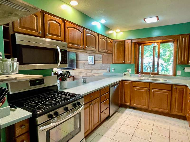 Experience breathtaking river views from the large windows in the great room or while unwinding on the expansive deck. This home features a private boat slip, ideal for enjoying riverfront life. The lower level includes a spacious great room, a second kitchen, a private entrance, a full bathroom, an additional bedroom, and ample storage space, making it perfect for guests or extended living arrangements. The roof was replaced in 2009 with a 30-year architectural style, while the furnace and air conditioning system were updated in 2011, and the fireplace was installed in 2012.