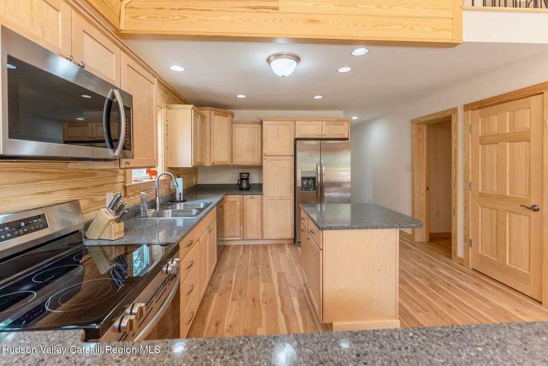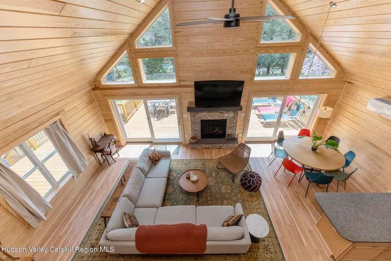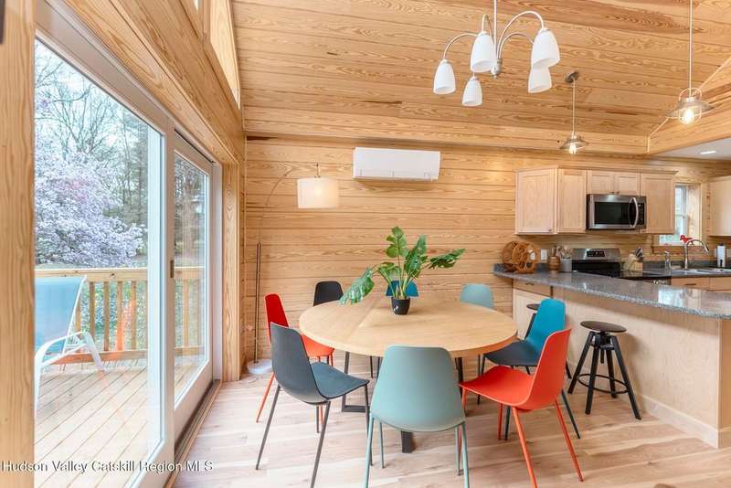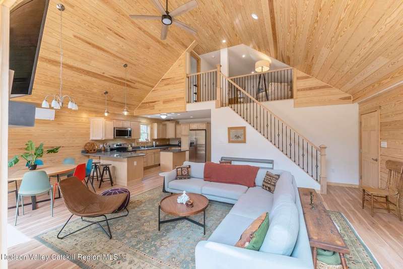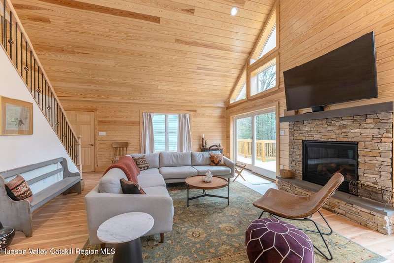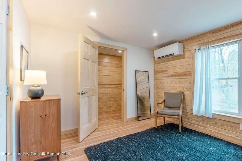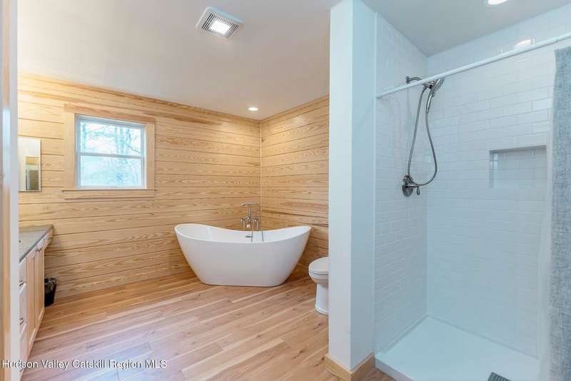 Discover modern living at its finest with this newly built contemporary home, perfectly nestled on 2 private acres along the enchanting Sawkill Creek in Woodstock. Designed with both style and practicality in mind, this property seamlessly blends sleek modern amenities with the natural beauty of its surroundings.Built above the floodplain in accordance with FEMA standards, the home offers peace of mind alongside its luxurious features. Inside, the open-concept design is bathed in natural light, with a gas fireplace anchoring the main living area. The gourmet kitchen, perfect for entertaining, flows effortlessly into the dining and living spaces, with access to a spacious back deck overlooking the serene landscape.The home boasts not one, but two primary suites, each offering spa-like bathrooms and providing comfort and privacy for owners and guests alike. Bluestone walkways and the oversized garage add to the home's thoughtful design and functionality, while town sewer connections ensure modern convenience.Step outside to your own private paradise, where the majestic Sawkill Creek offers not one, but two exceptional swimming holes, including the renowned ''BIG DEEP'' swimming hole just a minutes walk away. Whether you're hoping in for a refreshing swim or relaxing by the water's edge, this property offers an unparalleled connection to nature.A rare gem in the heart of Woodstock, this property is a perfect retreat for those seeking contemporary luxury with the charm of the Hudson Valley. Schedule your private showing today and experience this exceptional home firsthand!House was built per FEMA above flood plain.