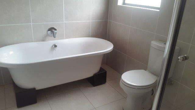 You are welcomed by a well sized living area comprising of a lounge/ dining room area that opens up to a double balcony. The modern open plan kitchen is fitted with ample cupboard space, quarts countertops, a gas hob, under counter electric oven and complete with Defy appliances.