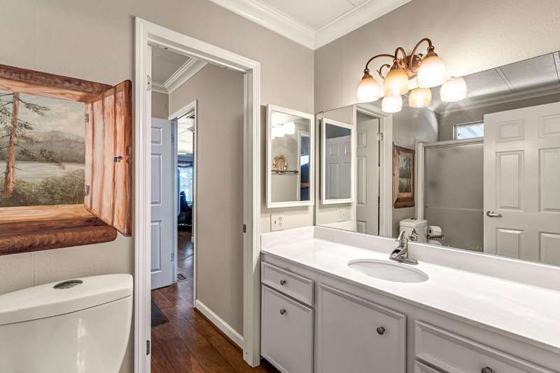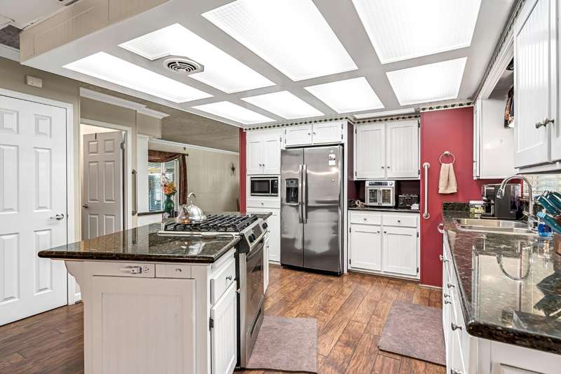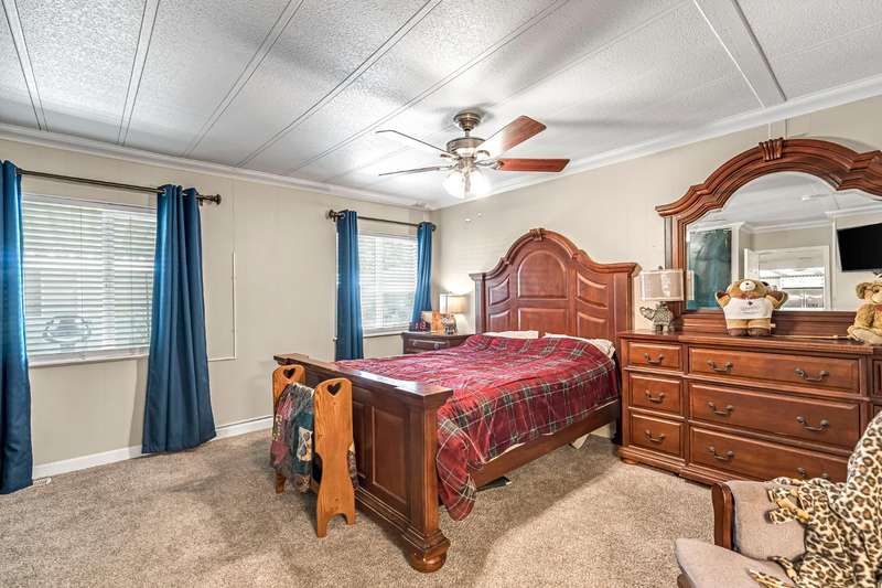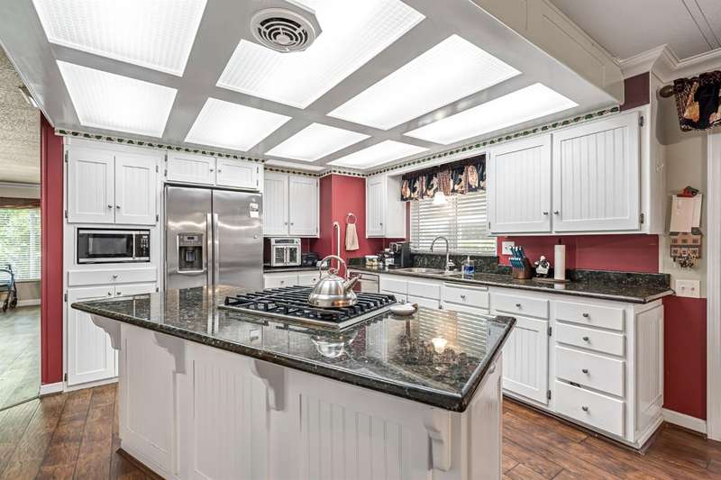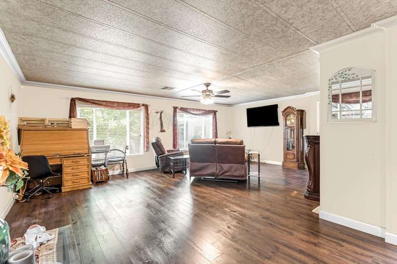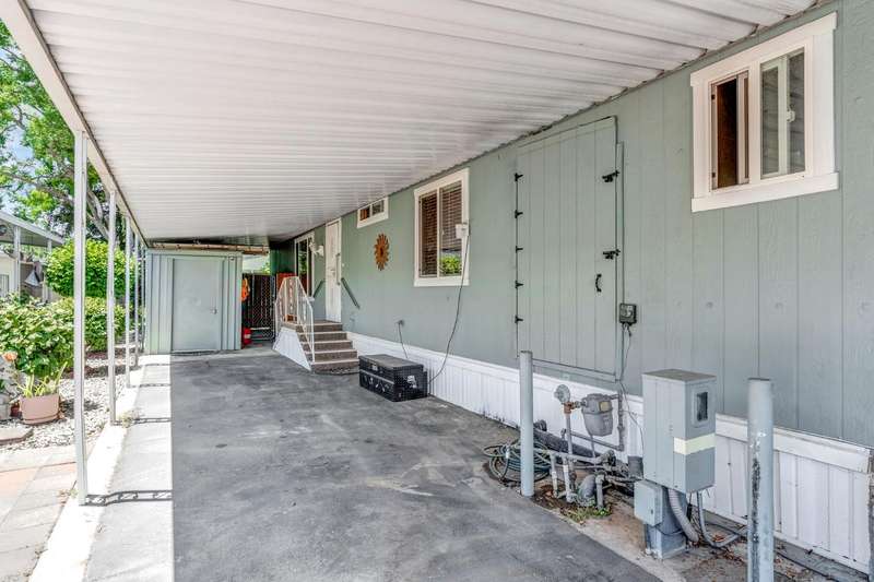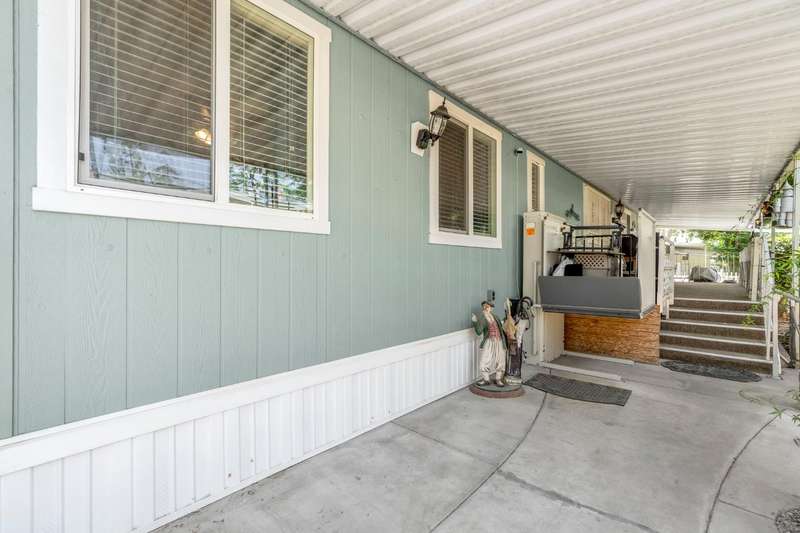 Must see home in the desirable Westlake Park 55+ community! This spacious mobile home offers both comfort and convenience with dual pane windows throughout. Featuring 2 bedrooms and 2 bathrooms, the home boasts a bright and open floor plan with a large living area, dining space with built-in hutch, and a functional kitchen with granite counter tops and plenty of storage with upgraded cabinetry and lighting. The master bathroom has a huge walk-in shower. Enjoy relaxing on the covered patio or entertaining in your private yard space. The home also includes an outdoor chair lift, indoor laundry area, and a storage shed for added convenience. Westlake Park is a gated 55+ community with resort-style amenities including night security, swimming pool, hot tub, well-equipped fitness center, putting green, car wash area, clubhouse with game room and library, and a calendar full of resident activities. RV and boat storage is available for an additional monthly fee. Home is being sold as is.