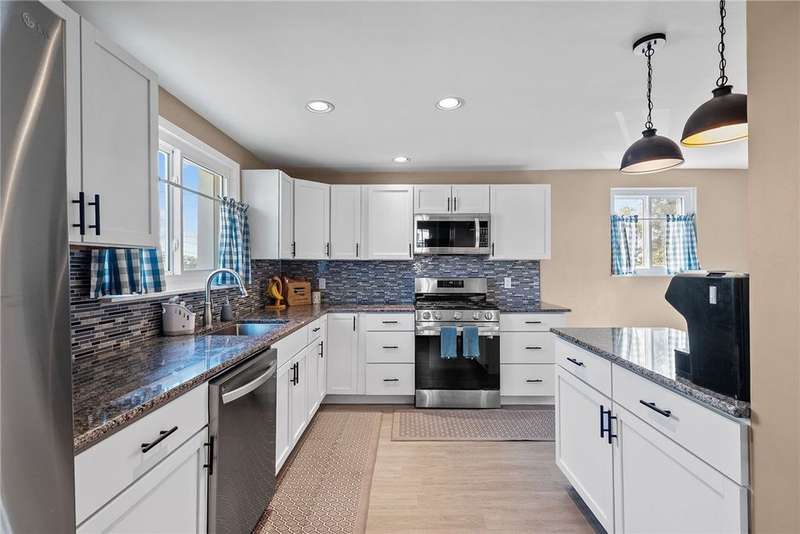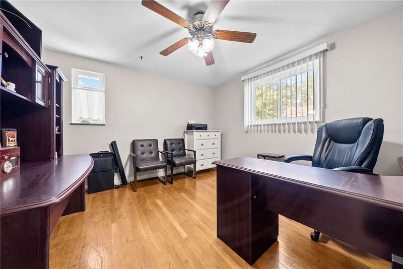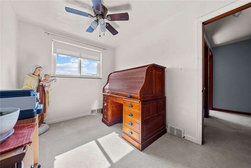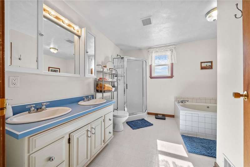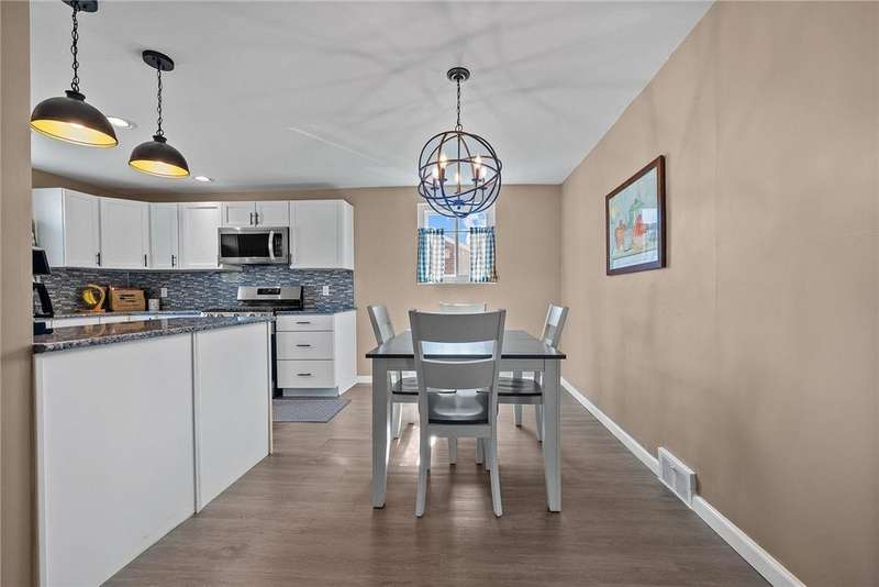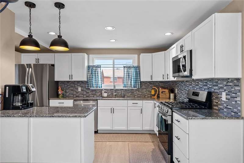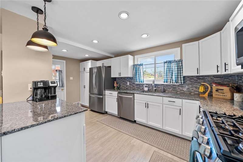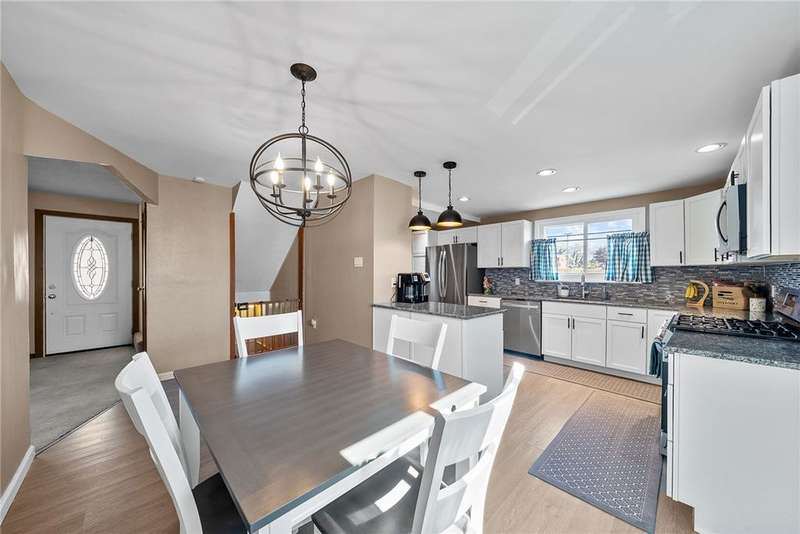 Beautifully Renovated 5-Bedroom Home on a Corner Lot. It is hard to miss as you step inside to see a stunning white kitchen featuring granite counters, stainless steel appliances, and a convenient breakfast bar?a chef's delight. The main floor showcases hardwood floors, a spacious living room, two bedrooms, a den, and an updated bathroom. Upstairs you'll find three additional bedrooms, including a large primary with a walk-in closet, plus a full bath with a relaxing jet tub and separate standing shower. The lower level offers a fully finished game room with a cozy gas fireplace and access to the side yard with privacy fence. Enjoy outdoor entertaining on the side patio. Numerous updates throughout. Conveniently located near Route 43, schools, shopping, school bus stop and restaurants.