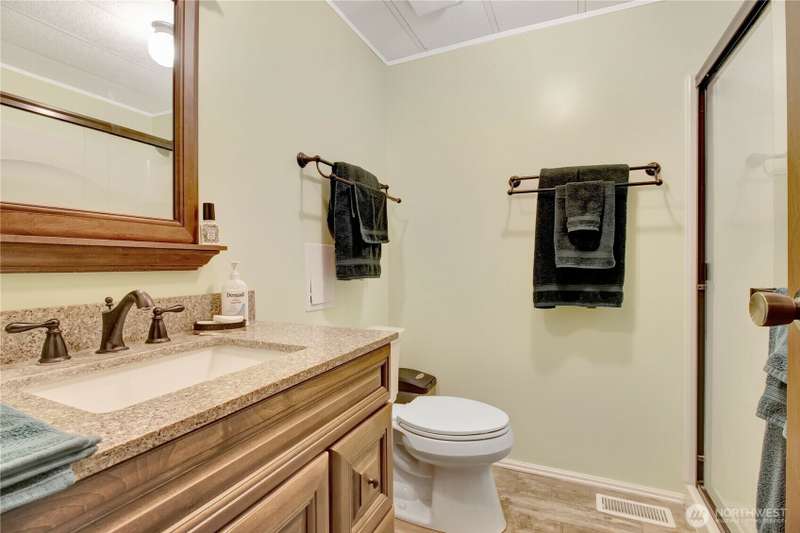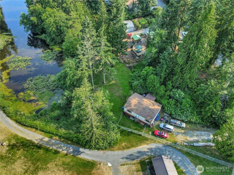 No Bank Waterfront in a quiet neighborhood on Camano Island. Very private, wooded on one side, Lost Lake Association on the other. Private Community Island to take long quiet walks in the park-like setting with yourself, your partner or your dog! Two bedrooms, one with new carpet, completely re-built bathroom, new stove, new heating system! Imagine sitting in your waterfront grass yard with your toes in the lake, late day sun illuminating the water and the island. Enjoy the peace with friends looking at nature from your back yard. Caring community with it's own Clubhouse. Dues include water, 2 free rentals of the Clubhouse per year. Welcome to your sanctuary away from the stressful outside world. Lake access needs some clearing of foliage.