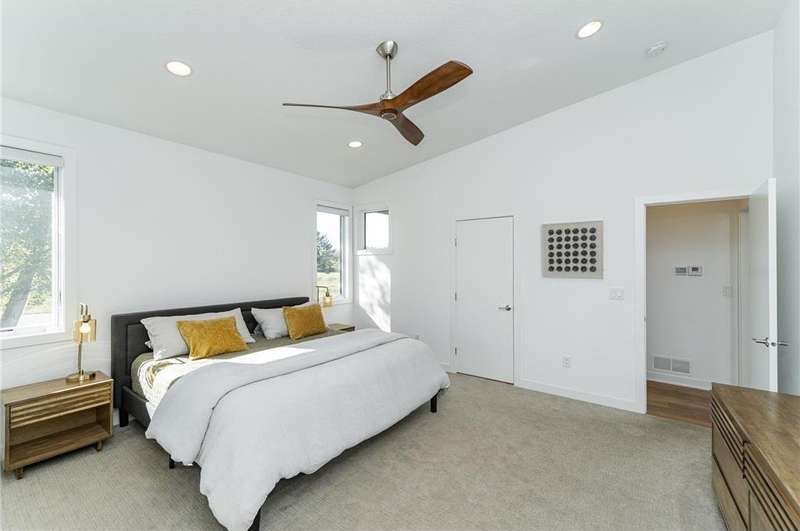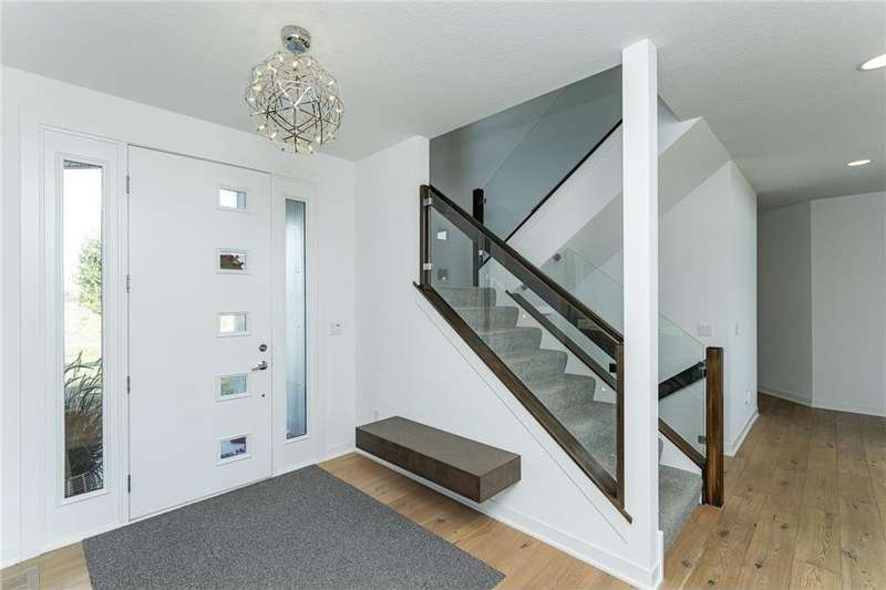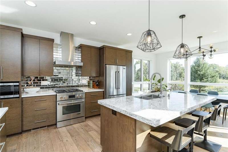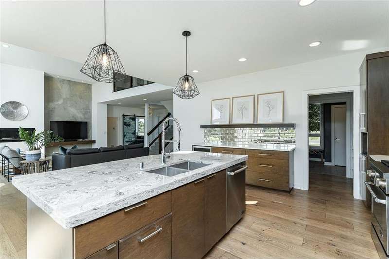 Welcome to this stunning modern home in the highly sought-after Mayo Woodlands neighborhood! Designed with clean lines, abundant natural light, and luxurious finishes, this 5-bedroom, 4-bathroom residence offers the perfect blend of style and functionality. The main floor features a spacious primary suite with his-and-hers closets, spa-inspired bathroom with soaking tub and heated towel rack, and conveniently located laundry. You'll also find a private office with custom built-ins, gourmet kitchen with a stylish and functional pantry, dining area, vaulted living room with expansive windows, and a well-designed mudroom. Upstairs, three generously sized bedrooms share a full bath, along with a second laundry room for added convenience. The recently completed lower level is an entertainer's dream featuring a lovely full kitchen, state-of-the-art exercise room with backlit mirrors, bathroom with faux skylight, large great room perfect for game or movie nights, a unique multi-purpose room accessible through a hidden door, an additional bedroom, and ample storage. Complete with a 3-car garage and positioned on a beautiful lot, this home is loaded with amenities and offers the best of modern living in one of Rochester's most desirable neighborhoods. Close to Mayo Clinic, schools, retail, trails and restaurants.
