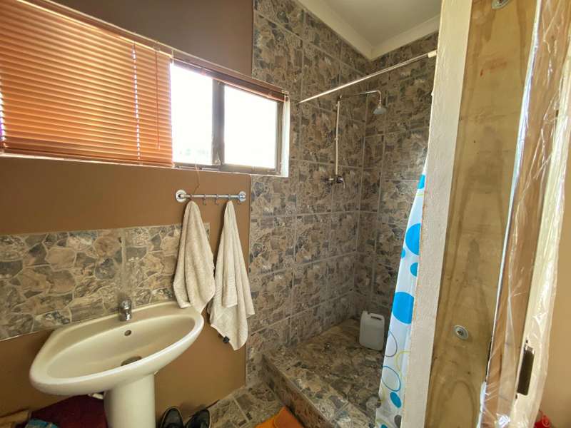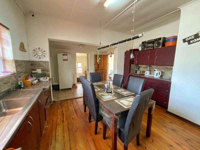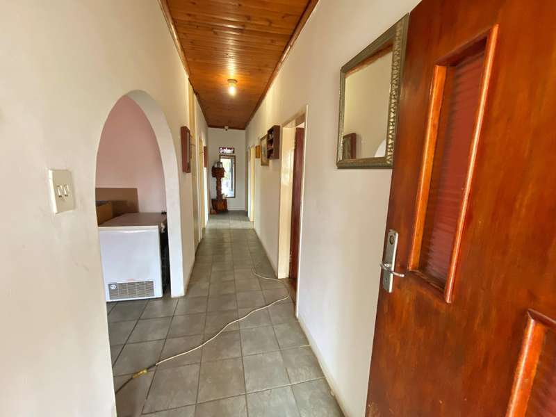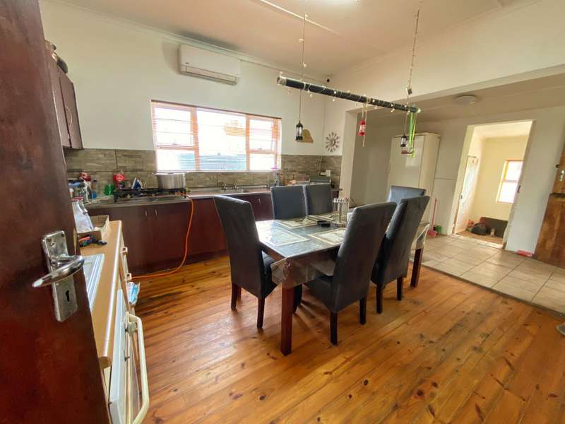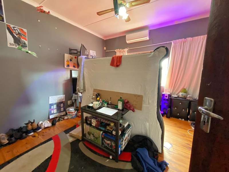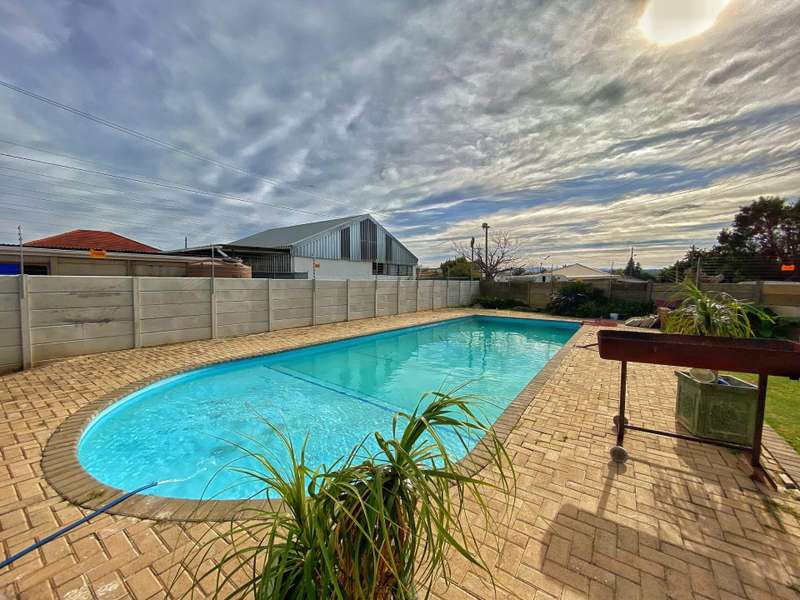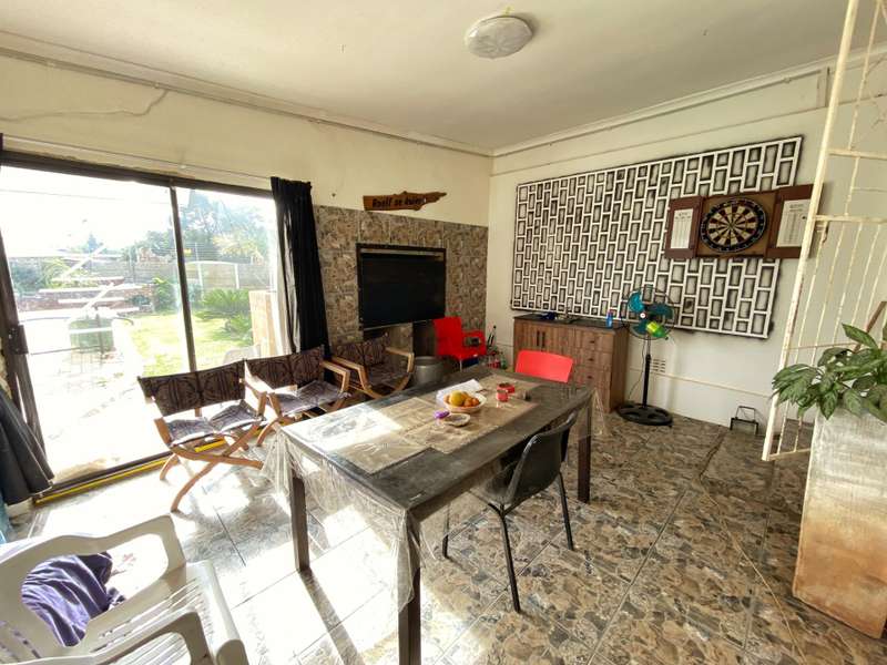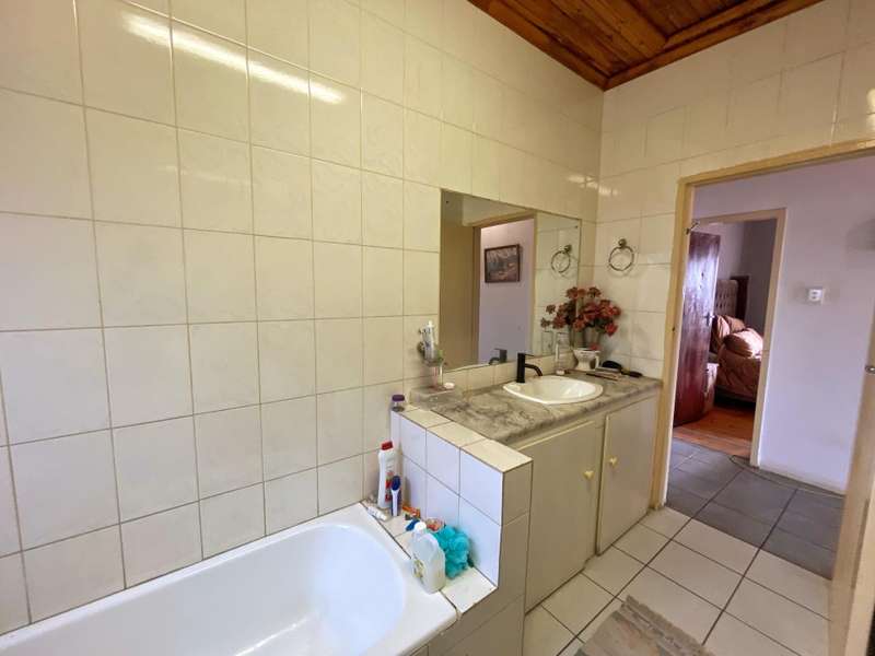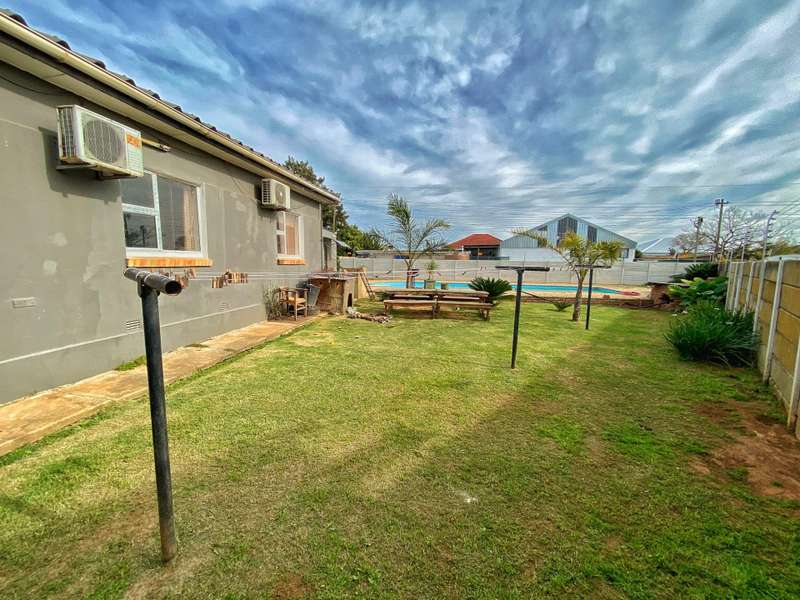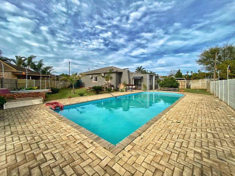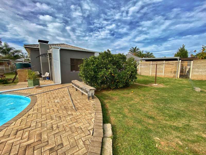This charming property combines family-friendly living with entertaining capabilities. Nestled in a peaceful cul-de-sac surrounded by welcoming neighbors, it is secured by electric fencing, CCTV surveillance, and an alarm system for added peace of mind. Inside the home, you?ÇÖll find: Three well-appointed bedrooms featuring built-in wardrobes, air conditioning, ceiling fans, stylish wooden floors, and window blinds. A spacious family bathroom complete with a bath, shower, toilet, and basin, all set beneath a cozy Nortipine ceiling. Kitchen equipped with built-in cupboards (excluding a stove) and air conditioning for comfort. A tiled corridor with linen cupboards and a warm Nortipine ceiling. A cozy lounge area boasting a Nortipine ceiling and air conditioning for relaxation. An extra room, currently utilized as a laundry, includes an en-suite shower, toilet, and basin, offering the potential to easily transform it into a fourth bedroom or guest suite. This room opens to a generous, tiled covered entertainment space equipped with a built-in braai, window blinds, and a sliding door that leads to the backyard. Outdoor Highlights: An expansive 5x10m swimming pool (serviced by a pool company) with a baby pool alongside. A secondary outdoor braai area perfect for summer gatherings by the pool. Double garage, a single carport, and two manual double gates within the property, alongside a manual front double gate. Two water tanks, with one connected to the home. A selection of fruit trees for the gardening enthusiast. Additional Feature: A self-contained flatlet with an open-plan kitchenette and living space, one bedroom, a shower, and a toilet, currently generating a rental income of R3500 per month. The flatlet also features Nortipine ceilings and municipal electricity. Seize the opportunity to own this versatile, well-cared-for home that offers abundant space, income potential, and top-notch security.
