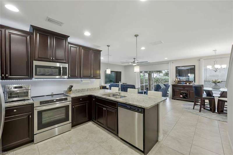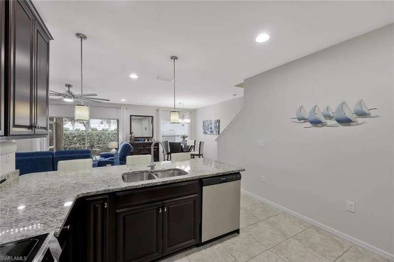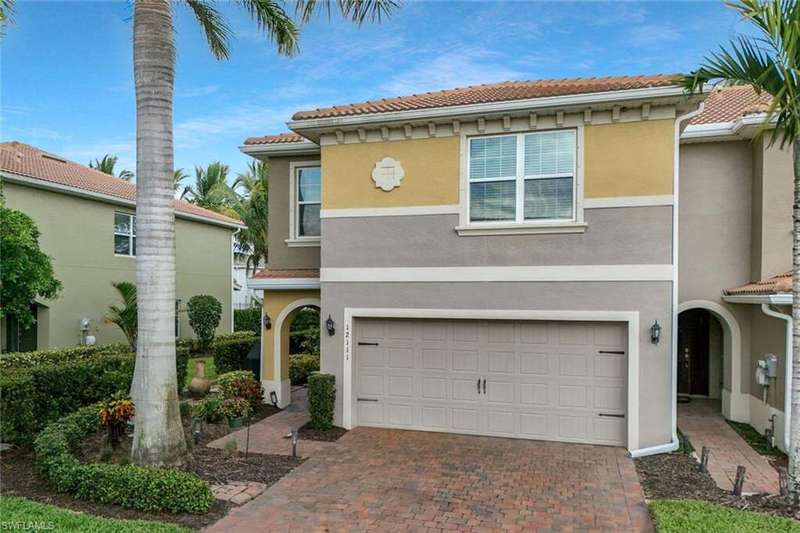 Welcome home to this CORNER UNIT spacious and modern Townhouse with a 2 car garage in the gated Hammock Cove community at Gateway. The floorplan offers 2018 sq ft. The main level features a half bath near the entry with all tile flooring, stainless steel appliances, a spacious kitchen with granite countertops, premium cabinetry, large storage space under the stairs, cozy living room and dining area. The upstairs has premium carpet and features the large primary bedroom with a walk-in closet and ensuite bathroom, two guest bedrooms, full bath, and a BONUS LOFT SPACE!! Sit on your private screened lanai enjoying the peaceful landscaped view right in your backyard. This perfect location puts you a short distance from the Hammock Cove neighborhood pool and is conveniently located close to I-75, RSW Airport, Red Sox and Twins Stadiums, Restaurants, Shopping, Churches and Hospital. Hammock Cove is pet-friendly and has low HOA fees that pay for your high speed internet, cable TV, community pool, gated entrance and landscaping. GATEWAY GREENS OFFERS BOTH SOCIAL AND GOLF MEMBERSHIPS WHICH INCLUDES: golf, tennis, pickleball, basketball, fitness center, resort style pool, restaurant, and so much more.