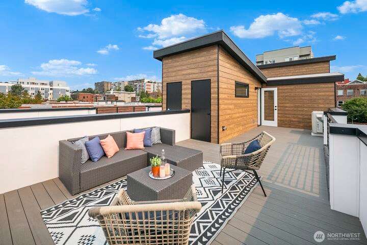 Stunning. Urban. Modern. Discover 318 Bellevue Ave E: a boutique collection of 6 new Olsen Anderson homes in prime Capitol Hill location. Step inside to soaring ceilings, big windows, open floorplan, wide plank floors, designer finishes. Enjoy views of city, Space Needle, and Olympics. TH1 is a sun-drenched west-facing home offering fenced patio, AC, generous rooms, dedicated EV-ready parking. Prepare meals in a chef's kitchen. Retreat to a dreamy primary suite with walk-in closet + spa-inspired bath. Entertain friends on huge roof deck w/ knock-out views. Dream location: just blocks off Broadway, walkable to SLU, downtown, light rail, everything on Capitol Hill. The cherry on top: Builder-paid 3.99% rate available! Welcome home!