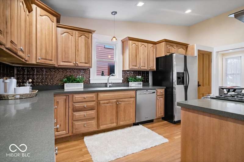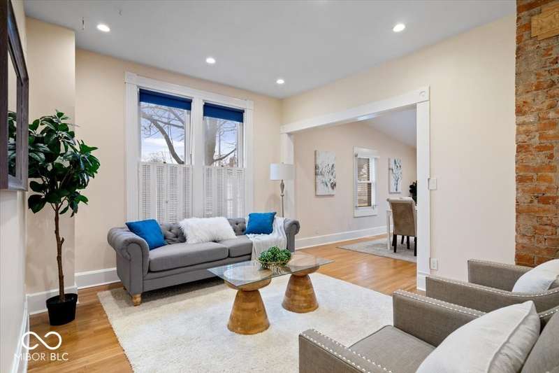 Welcome to 989 Woodruff Place East Drive, a beautifully preserved and thoughtfully updated home nestled in one of Indianapolis' most treasured historic districts. Known for its iconic fountains, globe streetlights, and wide esplanades, Woodruff Place offers timeless beauty and unmatched community charm-just minutes from downtown and the buzzing Bottleworks District. Step inside to find soaring ceilings, rich hardwood floors, and sunlight pouring through oversized windows. The open-concept kitchen is a dream for entertainers and home chefs alike, flowing seamlessly into the dining area. A formal office with a fireplace and a cozy living room round out the main level with warmth and flexibility. Upstairs, the vaulted primary suite is a true retreat, featuring exposed beams and a spa-inspired bathroom. Outside, enjoy morning coffee or evening wine on your private deck-an ideal escape in the city. Whether you're looking for character, comfort, or convenience, this one-of-a-kind home delivers it all in one of Indy's most beloved neighborhoods.