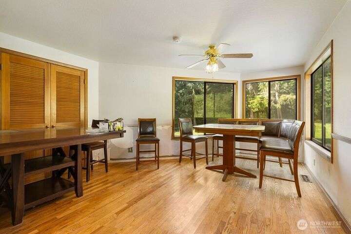 If you like country living this opportunity is for you, 5 acres of trees, open spaces and parking for RVs etc. The home features 3,884 sq. ft. of living area that includes a primary five piece bedrm and 3 additional guest bdrms, 3 full bths and a 1/2 bth. Large kitchen, dining rm plus bonus, family and living rms. Home also features 2 fipls. There is a detached 30X60 shop or 3 plus car garage and a carport. The home requires lots of updating and is an as-is-sale but it is priced accordingly.