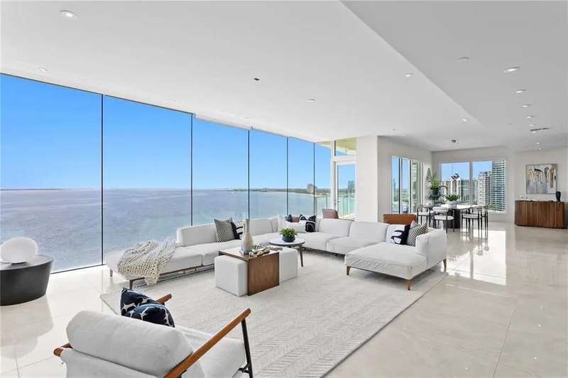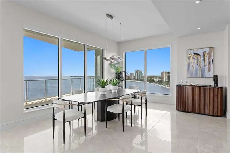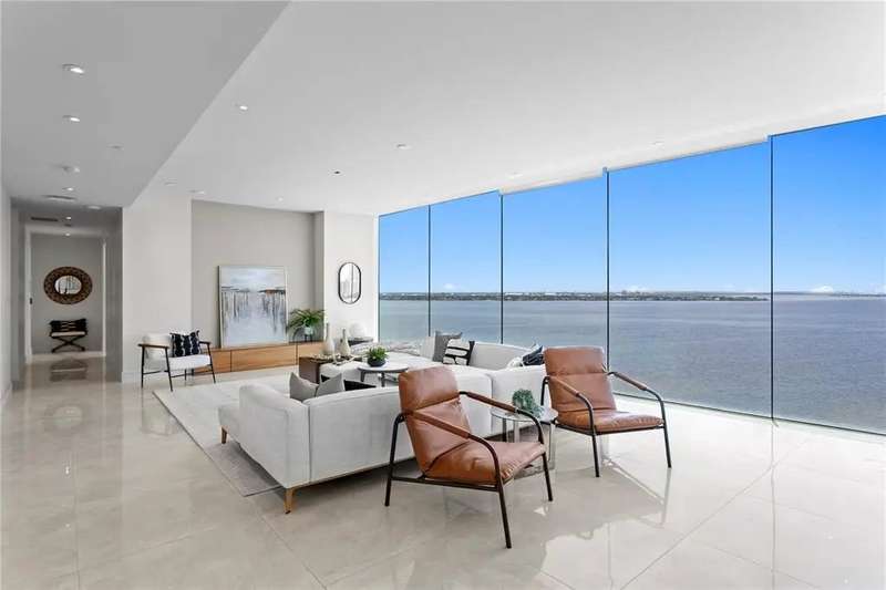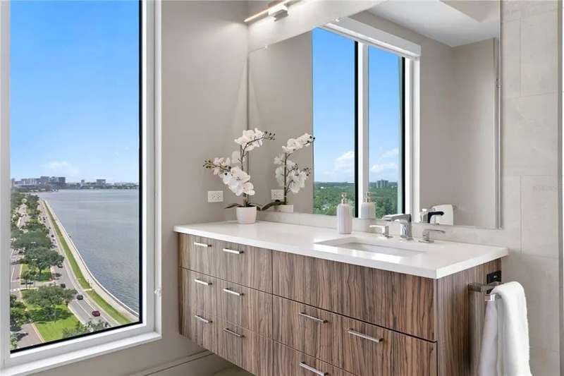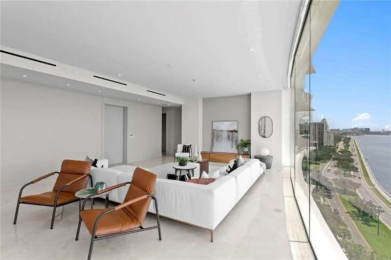 Welcome to The Sanctuary on Bayshore, South Tampa’s most exclusive residential address — where timeless architecture meets modern luxury, and offerings are as rare as they are exceptional. Perched high above Bayshore Boulevard on the 14th floor of this coveted 17-story tower — with only one residence per floor — Unit 1400 delivers a truly private, sky-high living experience that is as breathtaking as it is serene. Step directly from your private elevator into a dramatic double-door foyer that opens to 3,884 square feet of sweeping elegance. Spanning an impressive 48 feet across the front of Bayshore, this one-of-a-kind residence is framed by floor-to-ceiling glass walls and two expansive terraces, capturing unobstructed, panoramic views from sunrise to sunset — of Tampa Bay, downtown, and beyond. Designed with intentionality and flair, the home features 10-foot ceilings, a gracious open floor plan, and sophisticated finishes throughout. With three bedrooms, three and a half baths, and a versatile den, the layout seamlessly balances effortless entertaining with relaxed everyday living. The chef’s kitchen is a work of art — outfitted with a quartz waterfall island, Sub-Zero refrigerator and freezer, dual Gaggenau ovens, a Sub-Zero wine fridge, two dishwashers, and a gas cooktop — all while offering front-row views of the bay. Retreat to your primary suite, a true sanctuary within The Sanctuary, complete with a spainspired bath featuring an oversized soaking tub, a glass-enclosed shower, and bayfront views that soothe the soul. The custom California Closets-designed wardrobe is an unexpected luxury — nearly the size of the bedroom itself and expertly appointed. For peace of mind, the residence includes a full-home generator, offering true “lock and leave” confidence. Amenities include a resort-style pool and spa, state-of-the-art gym, and the security and discretion only a building like this can provide. Homes in The Sanctuary rarely come to market —This is a lifestyle for those who expect excellence, on Tampa’s most iconic avenue.