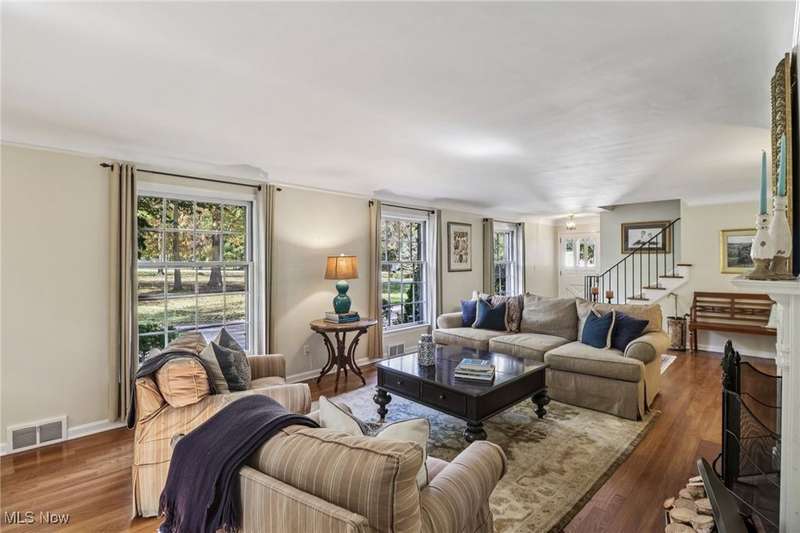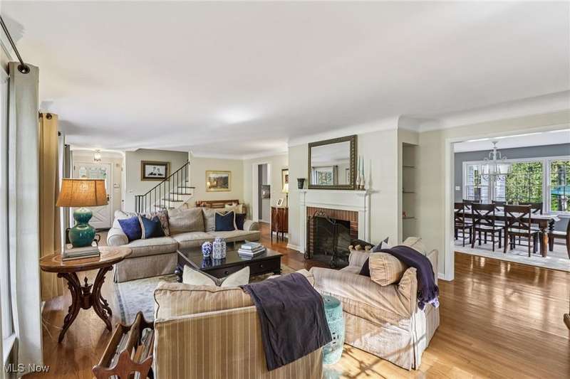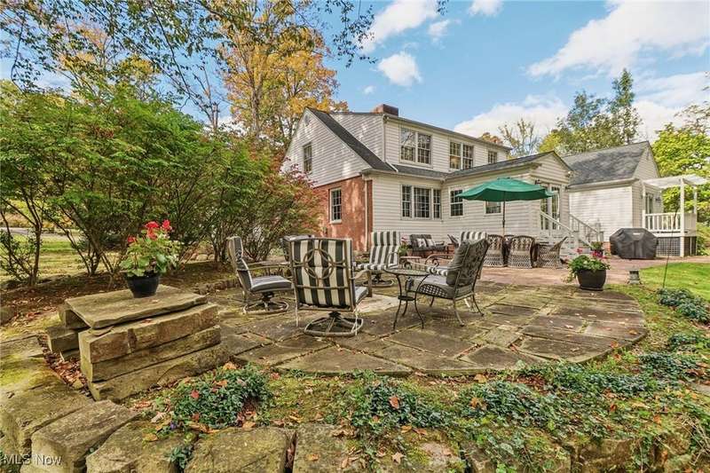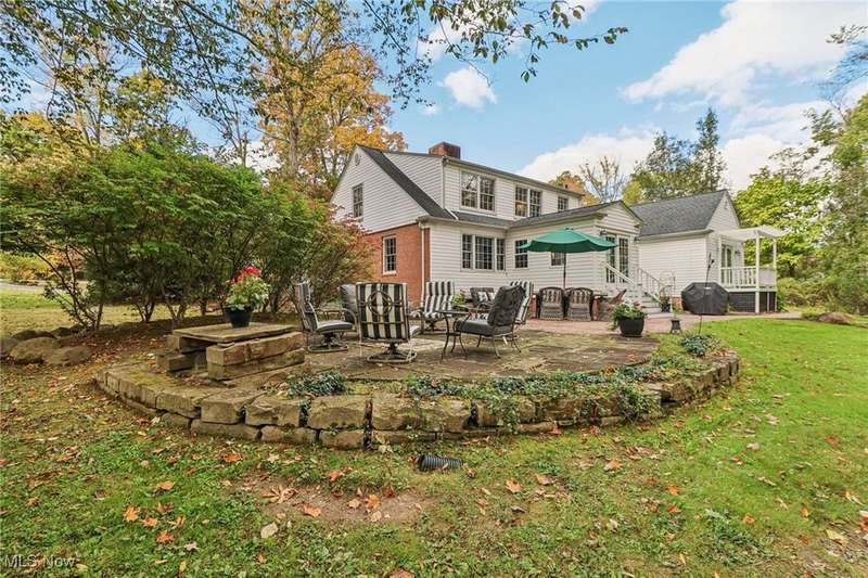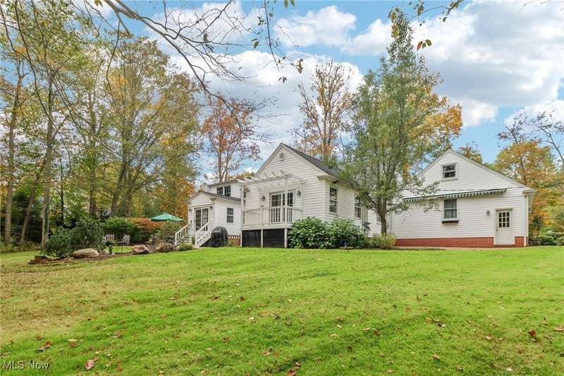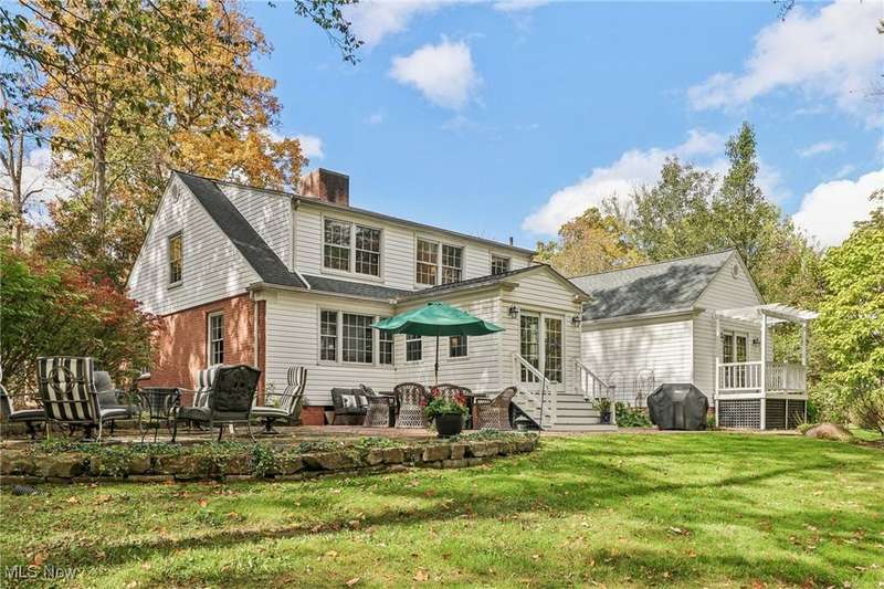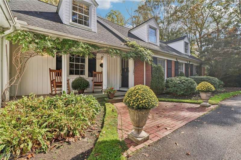 Welcome to this tastefully updated Cape Cod in Gates Mills, offering true first floor living on a breathtaking 2.5 acre park like property. The first floor primary suite features private outdoor access, complemented by a second bedroom and laundry on the main level for convenience. The updated kitchen opens to a fireplace lit dining area and a four season room with sliders to the tranquil backyard oasis. The formal living room offers a beautiful fireplace and views of the natural surroundings. The second floor includes two additional bedrooms and a full bath, providing space for family, guests, or a home office. A finished lower level adds flexible space for recreation, fitness, or hobbies. Thoughtfully maintained and updated throughout, this home blends timeless character with modern comfort. Enjoy nearby amenities including Starbucks, Sara's Place, the Gates Mills Branch Library, and North Chagrin Reservation with its scenic trails and nature preserves. Convenient access to the Chagrin Valley, University Circle, Cleveland Clinic, and Cleveland's renowned museums, orchestra, and dining. Experience the best of Gates Mills living, a peaceful retreat that blends privacy, comfort, and timeless charm.