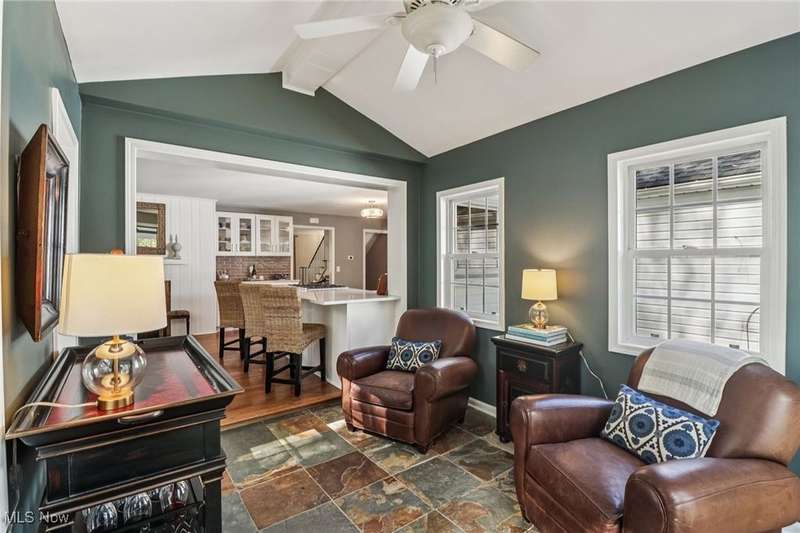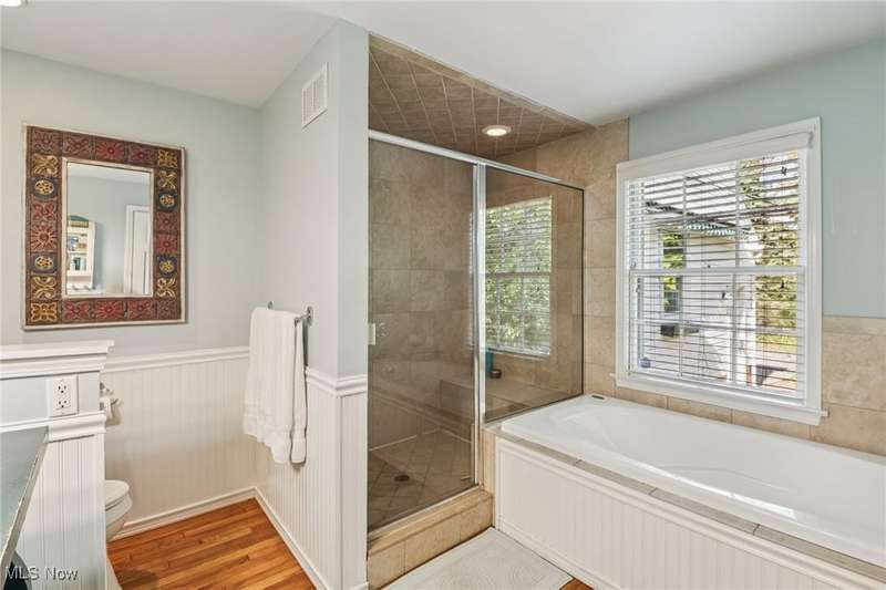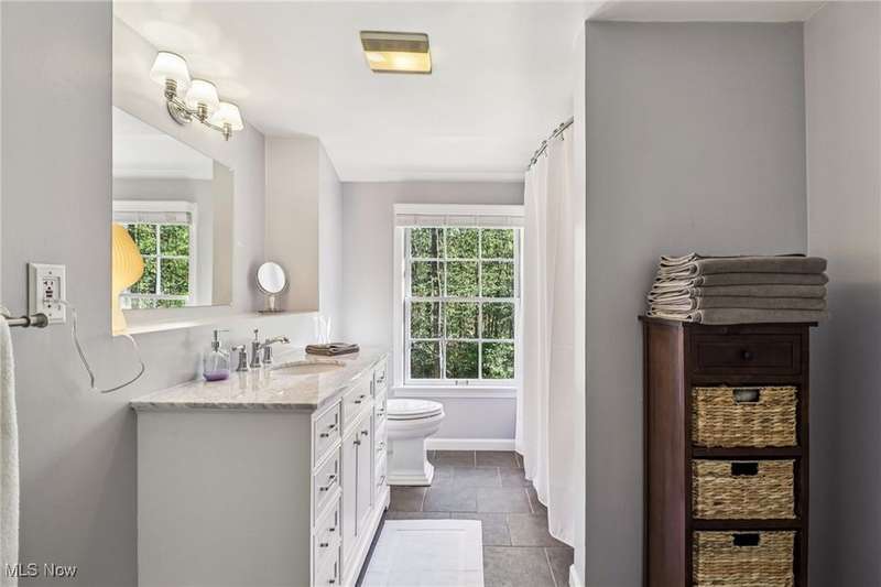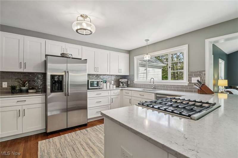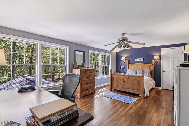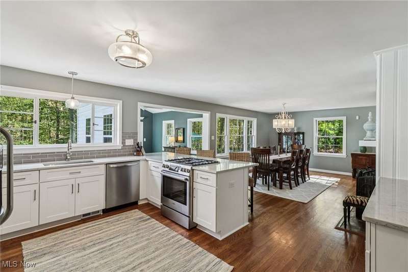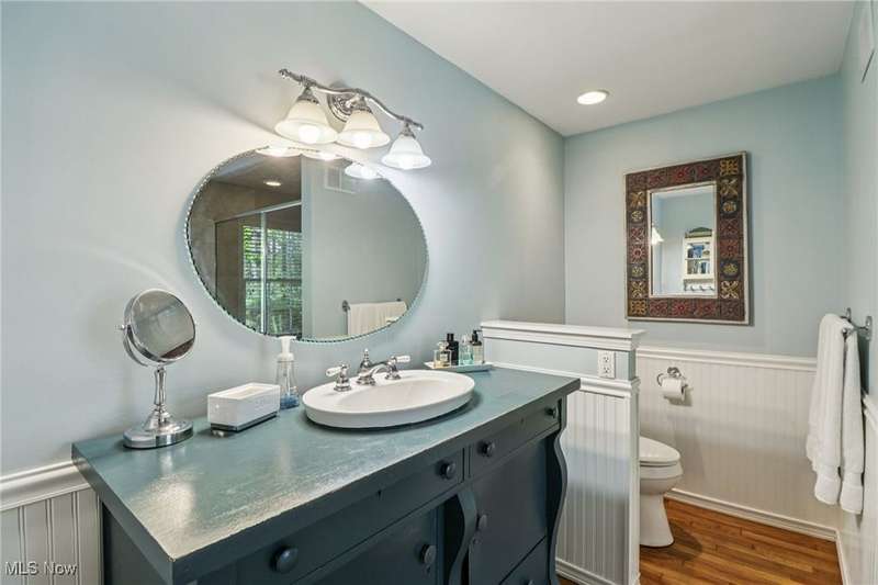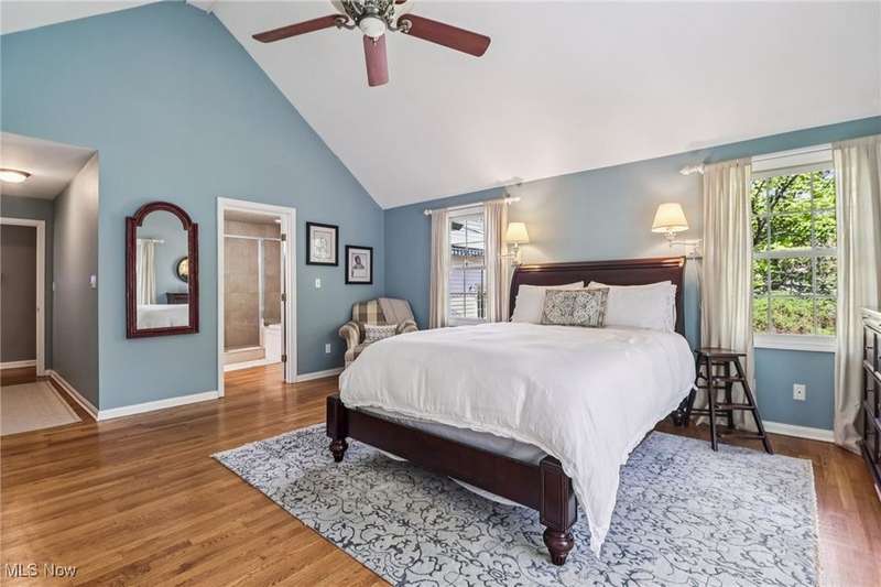 Welcome to this tastefully updated Cape Cod in Gates Mills, offering true first floor living on a breathtaking 2.5 acre park like property. The first floor primary suite features private outdoor access, complemented by a second bedroom and laundry on the main level for convenience. The updated kitchen opens to a fireplace lit dining area and a four season room with sliders to the tranquil backyard oasis. The formal living room offers a beautiful fireplace and views of the natural surroundings. The second floor includes two additional bedrooms and a full bath, providing space for family, guests, or a home office. A finished lower level adds flexible space for recreation, fitness, or hobbies. Thoughtfully maintained and updated throughout, this home blends timeless character with modern comfort. Enjoy nearby amenities including Starbucks, Sara's Place, the Gates Mills Branch Library, and North Chagrin Reservation with its scenic trails and nature preserves. Convenient access to the Chagrin Valley, University Circle, Cleveland Clinic, and Cleveland's renowned museums, orchestra, and dining. Experience the best of Gates Mills living, a peaceful retreat that blends privacy, comfort, and timeless charm.