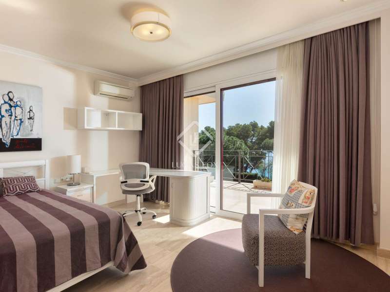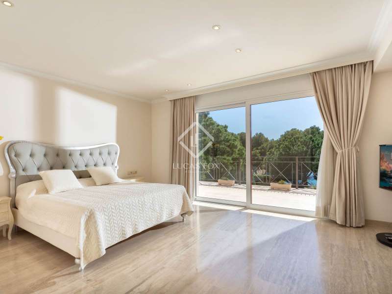 This exclusive Mediterranean villa is located in the prestigious Torre Valentina development in Sant Antoni de Calonge, just 50 meters from charming coves and 250 meters from the main beach. Its privileged location on the Costa Brava offers unparalleled panoramic views, rivaling any beachfront residence. This spectacular 703 m² property sits on a spacious 1,980 m² plot . Inside, it features six bedrooms and seven bathrooms, all designed to ensure maximum well-being and privacy. The ground floor stands out for its brightness and connection to the exterior. A spacious entrance hall with built-in wardrobes leads to an elegant guest bedroom with a private bathroom and sea views. The entrance hall also leads to a spacious living-dining room with large windows that allow for panoramic views while providing direct access to the garden, patio, and pool. The kitchen, fully equipped with high-end appliances , is strategically located with direct access to the outdoor areas . This floor also houses a staff bedroom with a bathroom , a separate utility room , and a garage with capacity for two cars. On the first floor is the main bedroom, with a private living room , bedroom, dressing room, study , and a bathroom with sea views. Additionally, there are three additional bedrooms on this level with panoramic views: bedroom with a dressing room and private bathroom , and two bedrooms that share a bathroom. An elegant home theater completes the floor, ideal for enjoying moments of entertainment without leaving home. The lower ground floor offers a wellness and leisure area with a separate entrance, featuring a fully equipped fitness room, a climate-controlled wine cellar , and a sauna with shower, ideal for relaxation and enjoyment. The property's exterior is as impressive as its interior. A magnificent Mediterranean garden surrounds the large pool with attached jacuzzi, perfect for enjoying quiet moments overlooking the sea. The terraces, both sunny and shaded, allow you to make the most of the outdoor lifestyle. The property is located close to all amenities, restaurants, and shops, in a prime location, a short distance from iconic destinations such as Palamós and Platja d'Aro. A residence that perfectly combines luxury, comfort, and an exceptional location, ideal for those seeking the best of the Costa Brava. Contact us for more information and viewings.