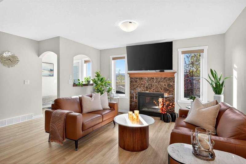 **OPEN HOUSE SUN Oct 5th 1 to 4pm**Step inside and you’ll immediately notice the brand-new luxury vinyl plank flooring throughout the entire home, including the stairs – giving the space a fresh, modern feel. The open layout flows beautifully, offering both comfort and functionality for everyday living. Upstairs, you’ll find generous-sized bedrooms, a bright family bonus room, and the convenience of an upper-level laundry room. This home sits on a perfectly placed lot – with no neighbours in front or behind you! Instead, enjoy peaceful views and a beautiful backyard that backs onto a walking path, perfect for evening strolls with the kids. The unspoiled basement is ready for your ideas with rough-ins, and a 2 large windows that could make way for another bedroom or 2 – ideal for multigenerational living or growing families. King’s Heights is one of Airdrie’s most sought-after communities with quick access to HWY 2 via the new 40th Avenue Interchange, plus nearby schools, shops, and restaurants. ?? All in all, this home is updated, inviting, and ready to welcome you. Book your showing today – you won’t want to miss it!