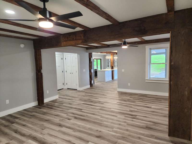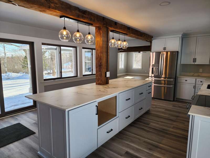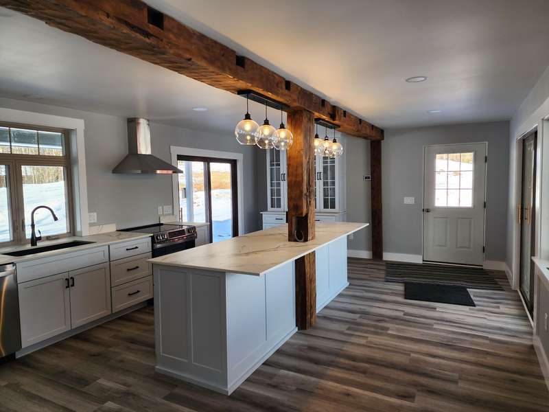 Step back into time in this stunning 1792 New England farmhouse, nestled into 5.7 acres of green fields that are surrounded by stone walls and trees! Historical granite hitching posts are still in place. Every inch of this home has been totally renovated from top to bottom. From the second you walk into the spacious kitchen, complete with all of the amenities of modern cabinetry and appliances, you'll be hooked. Nothing has been overlooked here. It boasts solid surface countertops, a gorgeous china cabinet, soft close doors, deep drawers, and a retractable appliance food processor station. The oversized island, with a breakfast bar, allows plenty of space to create delicious meals and entertain while spending time with family and friends. The kitchen blends into the spacious open living area. The first floor also features a primary bedroom with full bath and laundry, as well as a half bath for visitors. Exposed beams throughout highlight the character this home exudes. The second floor has three more bedrooms, a full bath, along with a cozy family room that could also serve as an in-home office. A full wrap around porch, new windows and doors, metal roof and tasteful two tone siding round out the beautiful look of the home. Next up is the heated 3 story barn complete with two stalls and a tack room. The barn has new low maintenance metal siding highlighting traditional board and batten look. In addition to everything else, there is a heated 40x80 foot commercial garage, with running water and bath. It will fit any piece of equipment you can think of. This space would be perfect for a trucking or excavation company, rented out for boat, car, or other storage space. You may also want to lease it out to a business for supplemental income. The possibilities are endless. The property also conveys a deeded right of way to Round Pond. Two public boat launches are within a few minutes of the property. Short Trip to L/A. FMI Contact Kenny Jacques @ Meservier & Associates.