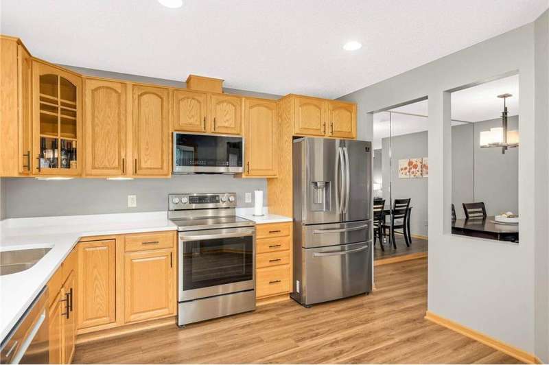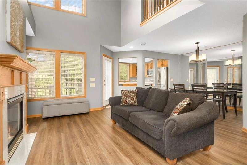 Beautiful 2 bedroom townhome in high demand Preserve neighborhood of Saint Michael. Inviting 2 story living room with cozy gas fireplace, built-ins and remote-controlled blinds for upper windows. Recently updated kitchen with gorgeous quartz countertops, new sink and faucet, stainless steel appliances. Sliding door leads from kitchen to charming front patio. Separate dining room off kitchen. Newer LVP flooring throughout the main level. Upper level with 2 bedrooms, full bath and loft perfect for an office space or reading nook. Two car garage with heater and drop-down ladder to access bonus space above the garage. Newer water heater and radon mitigation system. High efficiency furnace and AC with heat pump installed January 2025. Enjoy low maintenance living with HOA covered landscaping, mowing and snow removal.