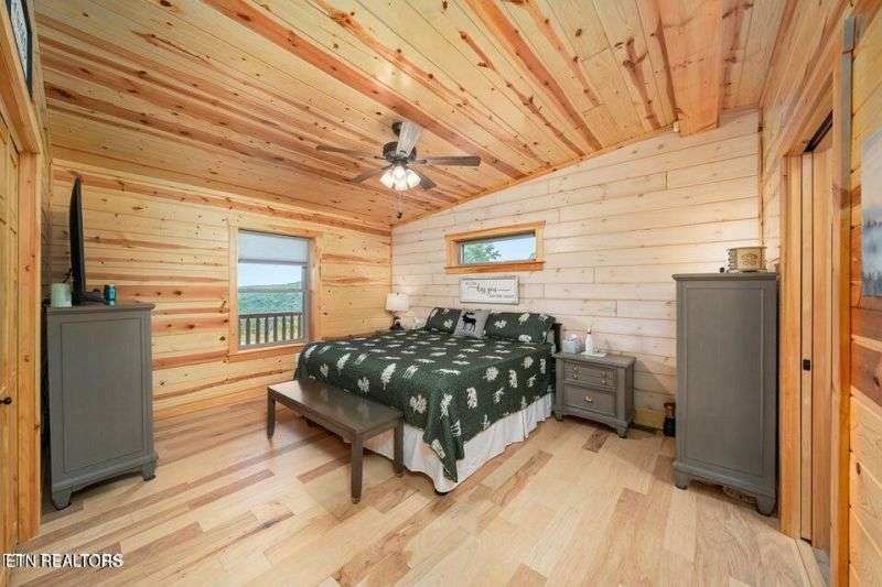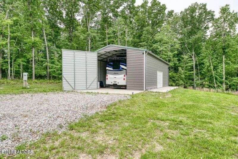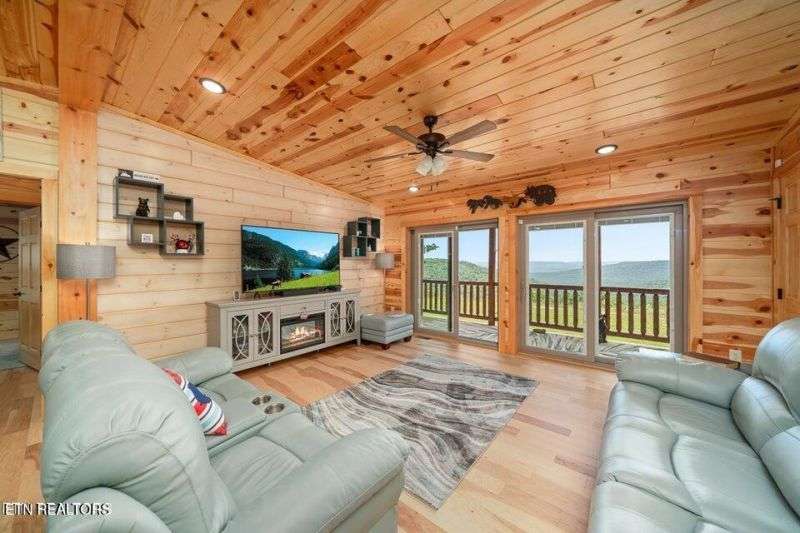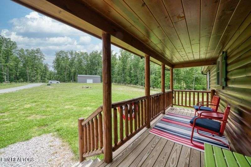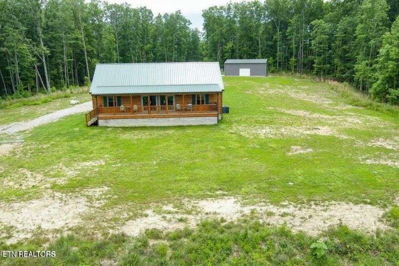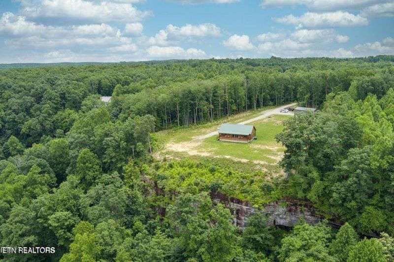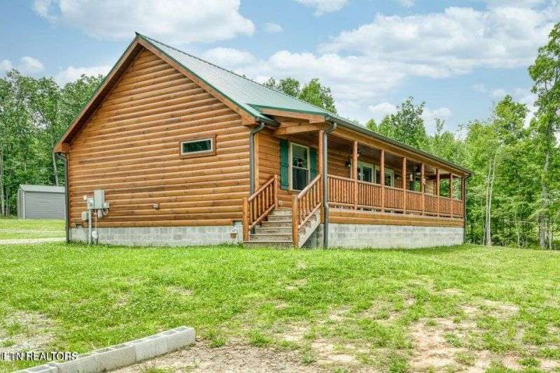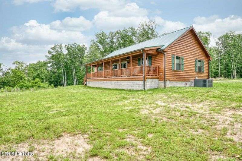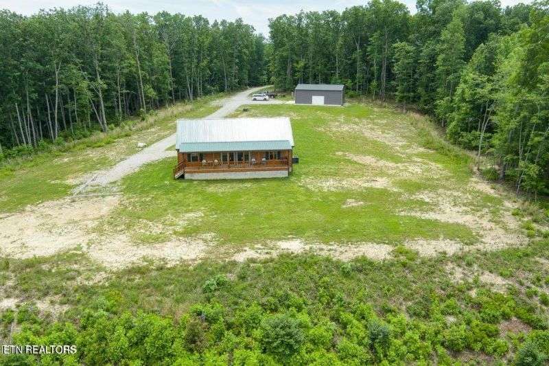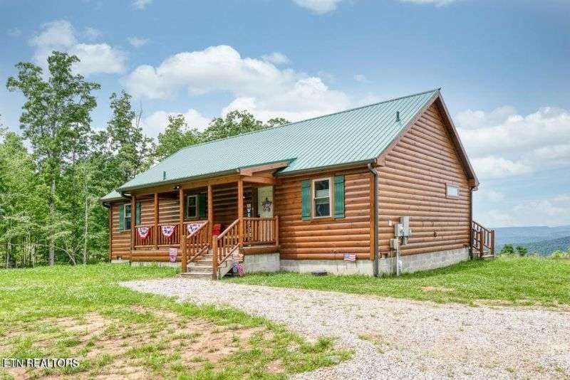 MILLION DOLLAR VIEW of the MOUNTAINS. Amish built cabin on the Bluff with Mountain & Valley views on 5.14 acres. 3 large bedrooms with two large baths. Kitchen has stained maple cabinets with soft-close drawers, a pantry, and an island with electricity. Floors are hickory, tankless water heater, all appliances including freezers convey. 4 Foot high crawl space with lights, concrete floor, and spray foam insulation. House has 200 AMP service with whole-house surge protection and wired for a generator. 40 X 24 garage with 13 foot high door and a 10 foot garage door that can fit three cars or an RV on top of 6 inch high-strength concrete base. Garage has its own 200 AMP service with two 110 and two 50 AMP outlets, water and 2 sewer hookups next to the garage. House and garage have gutters. ALL utilities underground. Gigabit internet service. The home has never been rented but could be as a vacation house. You could host 2 RVs there as there is plenty of room. Sewers, electric and water hookups at garage. Has 2 wonderful porches. 42 foot covered Bluff Porch overlooking the mountains. 20-foot covered porch overlooking the yard, driveway, and garage. Porches have wood ceilings also. Home is LIKE NEW and CLEAN. Will consider selling fully furnished. Centrally located 90 miles to Nashville, Chattanooga, and Knoxville on good paved roads. Sparta, Cookeville, and Crossville are nearby for shopping and dining. Buyer to verify all measurements and information to make an informed offer.