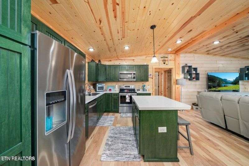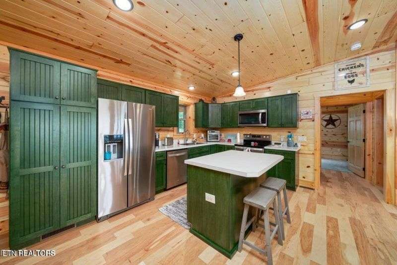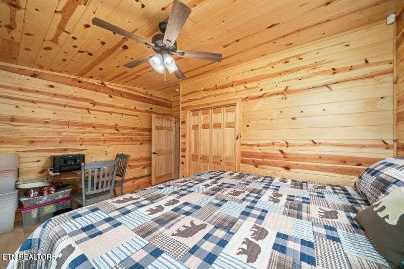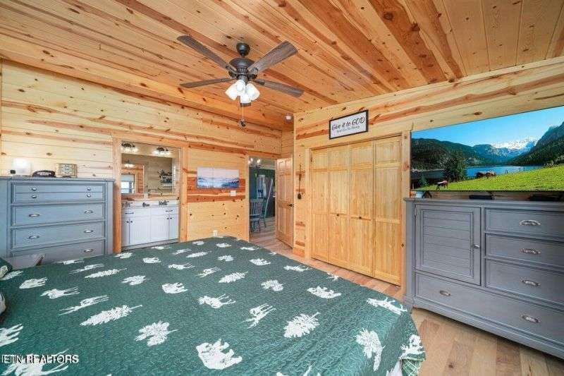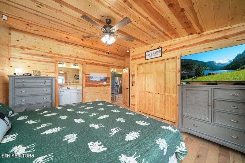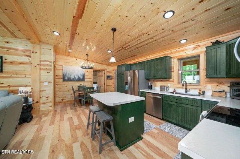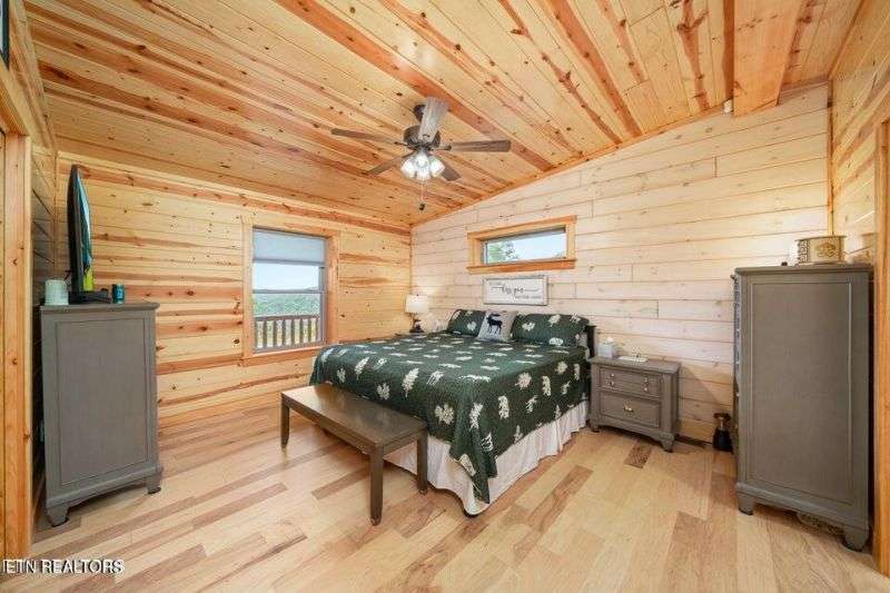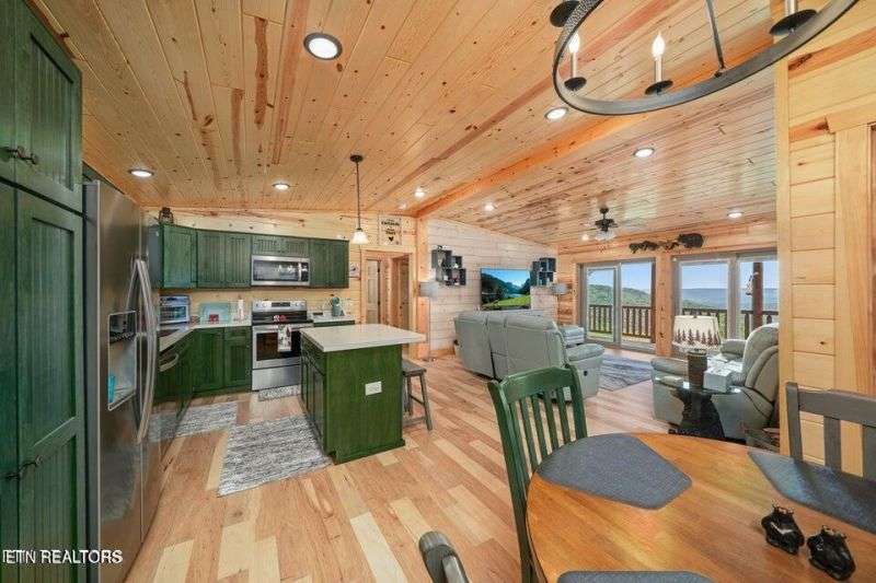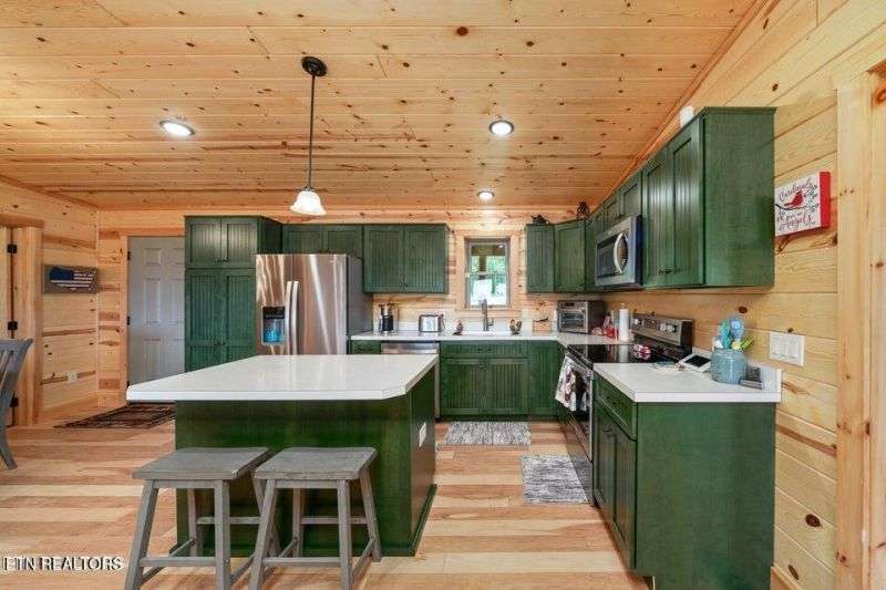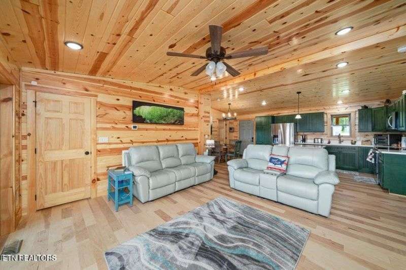 MILLION DOLLAR VIEW of the MOUNTAINS. Amish built cabin on the Bluff with Mountain & Valley views on 5.14 acres. 3 large bedrooms with two large baths. Kitchen has stained maple cabinets with soft-close drawers, a pantry, and an island with electricity. Floors are hickory, tankless water heater, all appliances including freezers convey. 4 Foot high crawl space with lights, concrete floor, and spray foam insulation. House has 200 AMP service with whole-house surge protection and wired for a generator. 40 X 24 garage with 13 foot high door and a 10 foot garage door that can fit three cars or an RV on top of 6 inch high-strength concrete base. Garage has its own 200 AMP service with two 110 and two 50 AMP outlets, water and 2 sewer hookups next to the garage. House and garage have gutters. ALL utilities underground. Gigabit internet service. The home has never been rented but could be as a vacation house. You could host 2 RVs there as there is plenty of room. Sewers, electric and water hookups at garage. Has 2 wonderful porches. 42 foot covered Bluff Porch overlooking the mountains. 20-foot covered porch overlooking the yard, driveway, and garage. Porches have wood ceilings also. Home is LIKE NEW and CLEAN. Will consider selling fully furnished. Centrally located 90 miles to Nashville, Chattanooga, and Knoxville on good paved roads. Sparta, Cookeville, and Crossville are nearby for shopping and dining. Buyer to verify all measurements and information to make an informed offer.