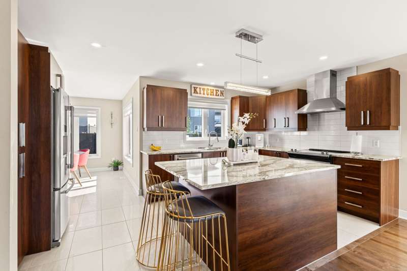 Habitations Raymond and Sylvain Menard - Model Chamonix customized to be made a double garage on a lot of almost 7200 SF this home has several upgrades and renovations including a gorgeous kitchen, finished basement, inground heated salt-water pool, corner lot next to a ravine and much more! In one of the most sought after areas in Vaudreuil.