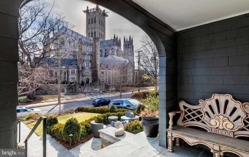 Beautifully renovated 1922 Dutch-style home facing The National Cathedral, where historic character meets modern comfort across four expansive floors. This home features 6 spacious bedrooms and 5.5 baths, including a luxurious primary suite with four oversized windows, a sunlit walk-in closet, and a spa-like bath with a double vanity. The main level welcomes you with a Calacutta marble slab fireplace in the living area, flowing seamlessly into the dining room and then into a bright, open kitchen and family space. The chefs kitchen is ideal for entertaining, featuring double ovens, a large central island, and ample room for gathering. Upstairs, the fourth floor offers two unique rooms with exposed beams and a skylight, creating cozy, sunlit retreats. For added convenience, you'll find laundry rooms on both the third floor and in the finished basement.Outside, enjoy a fully flagstone private patio with a built-in grilling area. The shared driveway adds practical access and parking while preserving the homes charming curb appeal, framed by a front yard view of the Cathedral. The finished basement expands your living space with a wet bar, complete with a mini fridge and dishwasher, plus additional rooms perfect for a gym or home office. With thoughtful renovations, original character, and plenty of space to live, host, and relax, this distinctive home is a rare opportunity to own a piece of historic architecture with all the modern amenities. Conveniently located just blocks to the Cathedral Commons shopping center, Cleveland Park, major commuter routes, public transportation including the Cleveland Park Metro station, and the National Zoo.