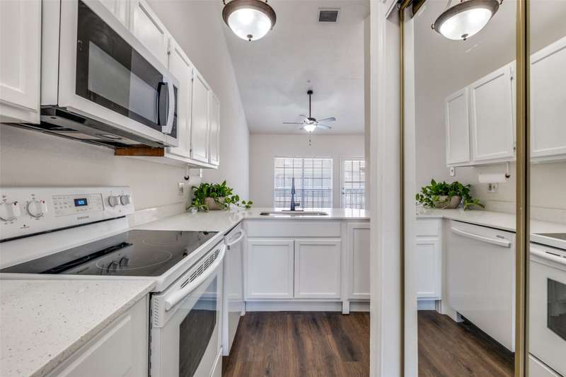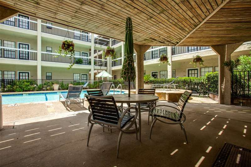 This Peaceful two-bedroom, two-bath Home in the Sought-After Bluffview location is Ready for Turn Key Living! Near Lovers and Inwood, this Condo is currently the Only One on the market in the five building complex with Vaulted Ceilings and on the Third floor. NEW HVAC and Offering a Large Living Area, this Open Floor Plan provides a Chic and Practical Home in the heart of Dallas' top restaurants and shopping. Private and Gated, this Condo Community has a Pool and Cabana, Fitness Room and Clubhouse. The home features Luxury Vinyl Plank flooring throughout, Carpeted bedrooms. Dining area decorated with Built-In Bookshelves and Glass Front Double Door Storage. The Large Primary Suite offers a peaceful retreat with its own Private Balcony, walk in closet with shelving, and an Ensuite bath with New Mirror. The Second Bedroom is ideal as a Guest Room or Office. A Second Balcony off kitchen with Extra Outdoor Space, New Turf added recently- Perfect Sitting Space for your morning coffee! Additional Storage Closets. Buyer and Buyer Agent to Verify All Information is Correct.
