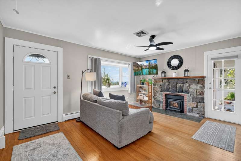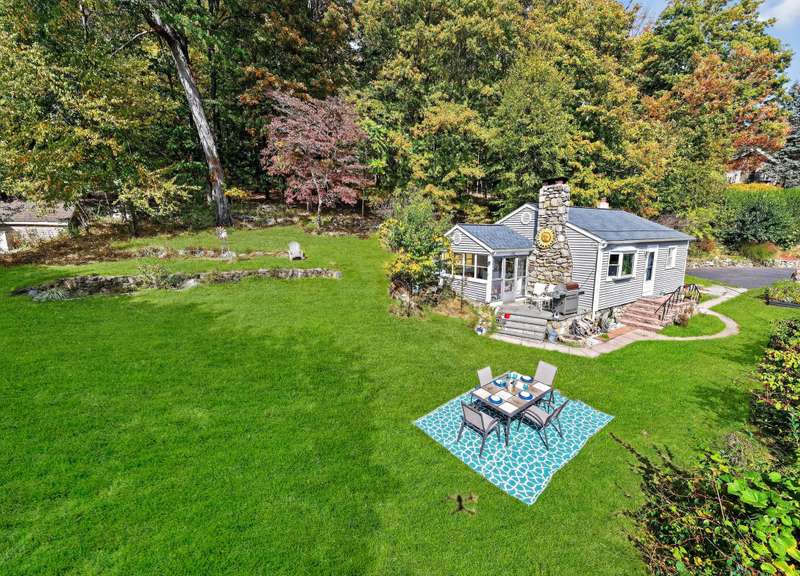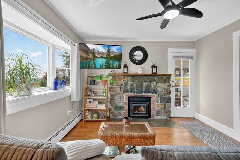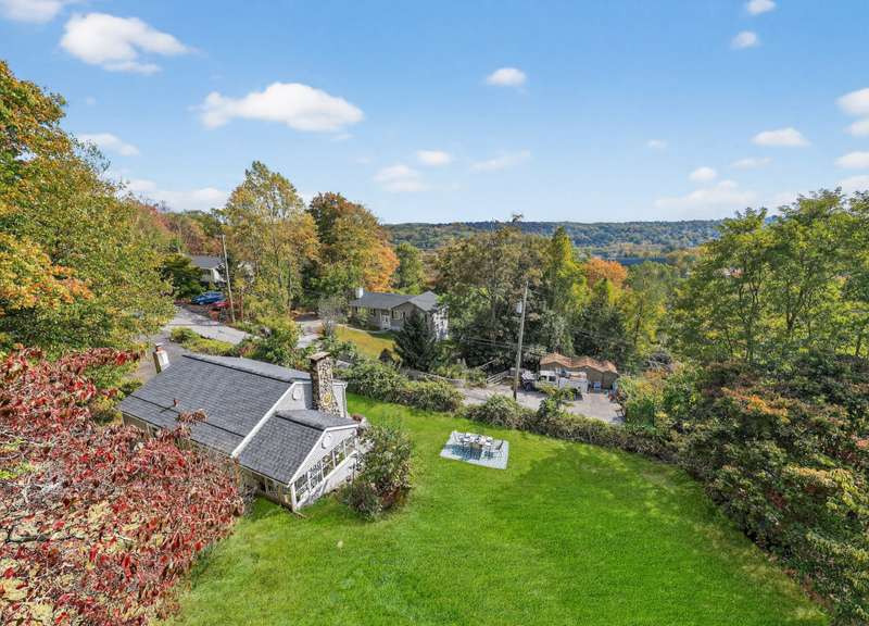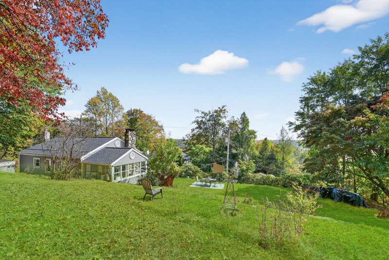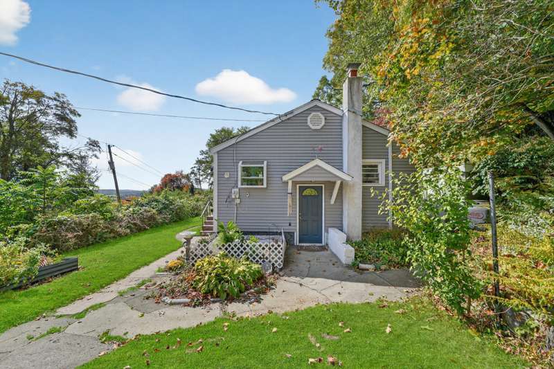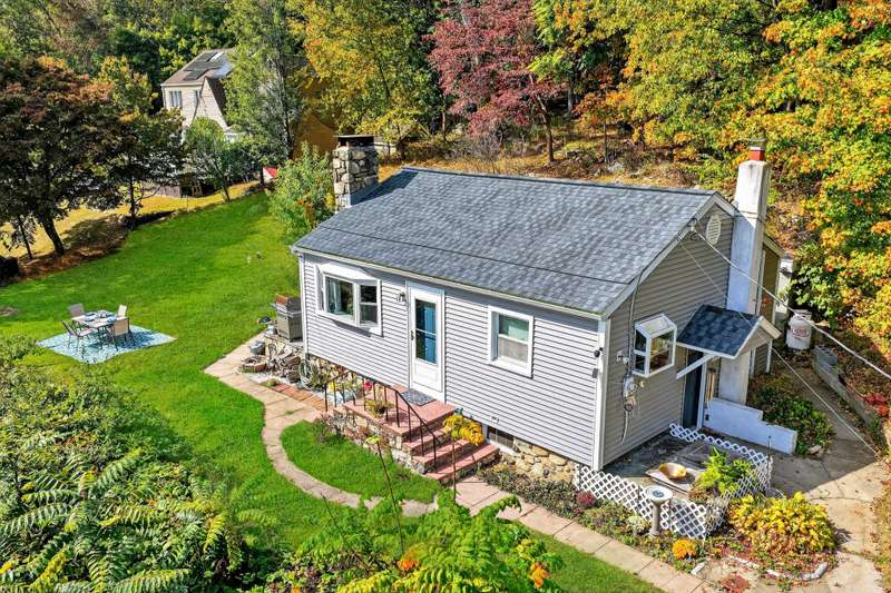 Absolutely charming bungalow that has been totally updated inside and out. Lovely land with fantastic sweeping views. New siding, roof (2024), central air, updated kitchen and bathroom. Interior access to basement with room to hook up washer and dryer. Low taxes, no maintenance, just enjoy the fireplace, sunroom or the solitude of your yard!