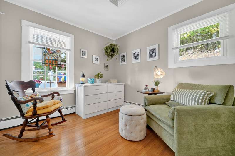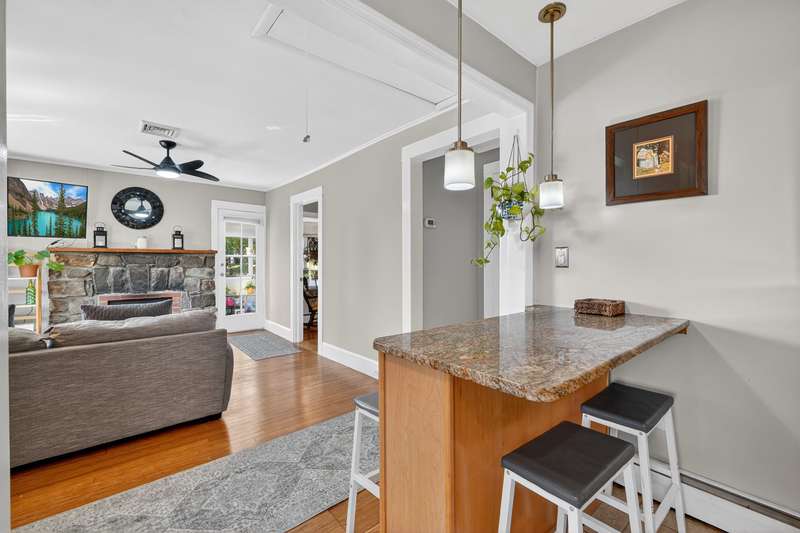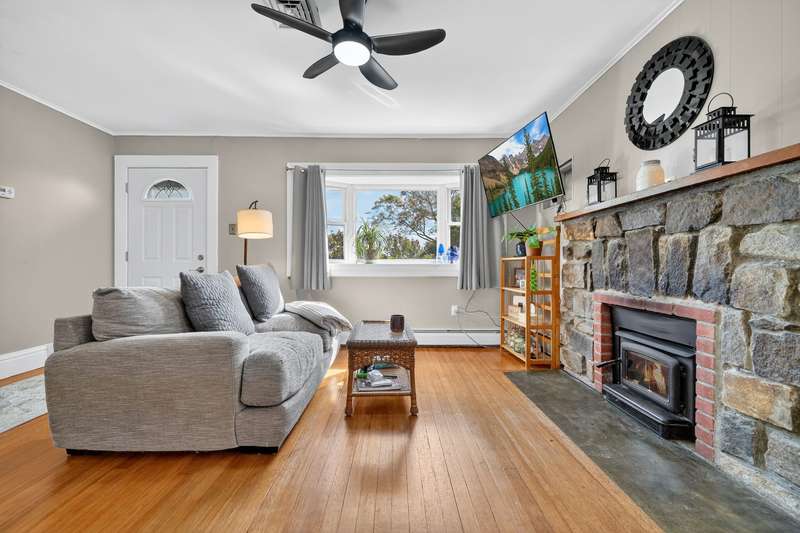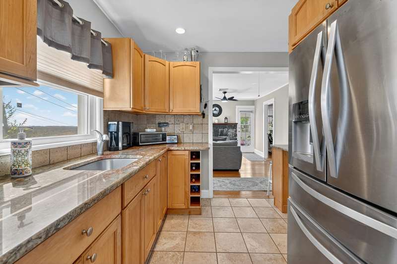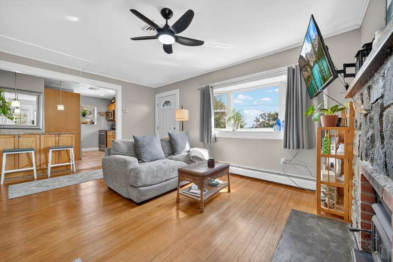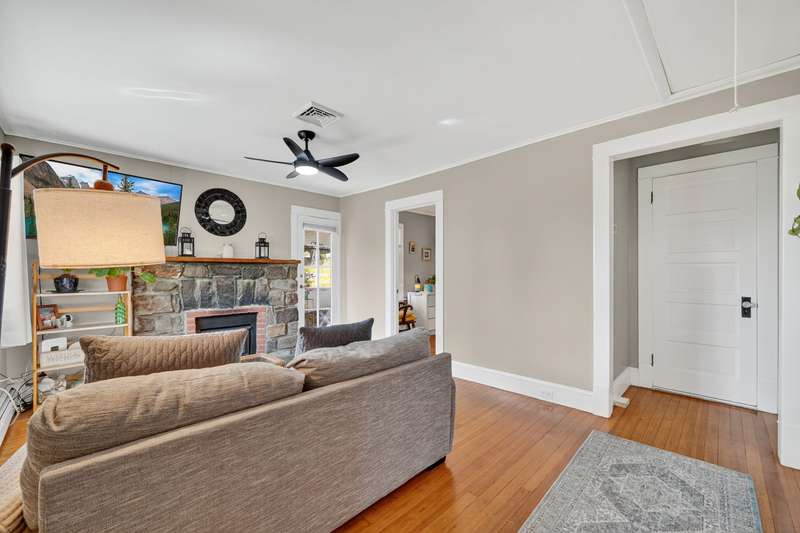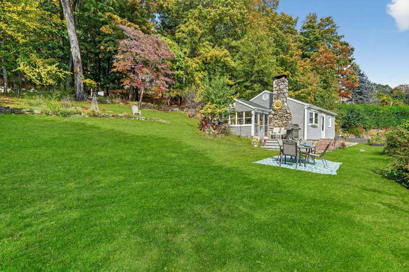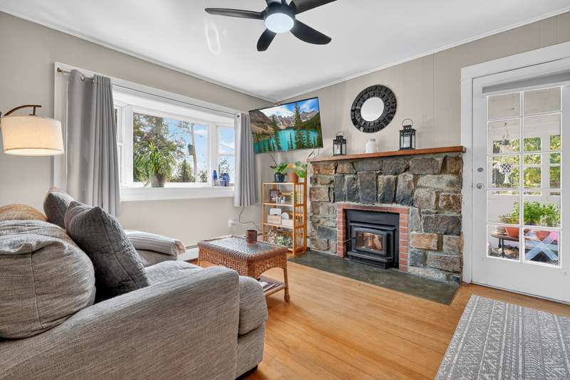 Absolutely charming bungalow that has been totally updated inside and out. Lovely land with fantastic sweeping views. New siding, roof (2024), central air, updated kitchen and bathroom. Interior access to basement with room to hook up washer and dryer. Low taxes, no maintenance, just enjoy the fireplace, sunroom or the solitude of your yard!