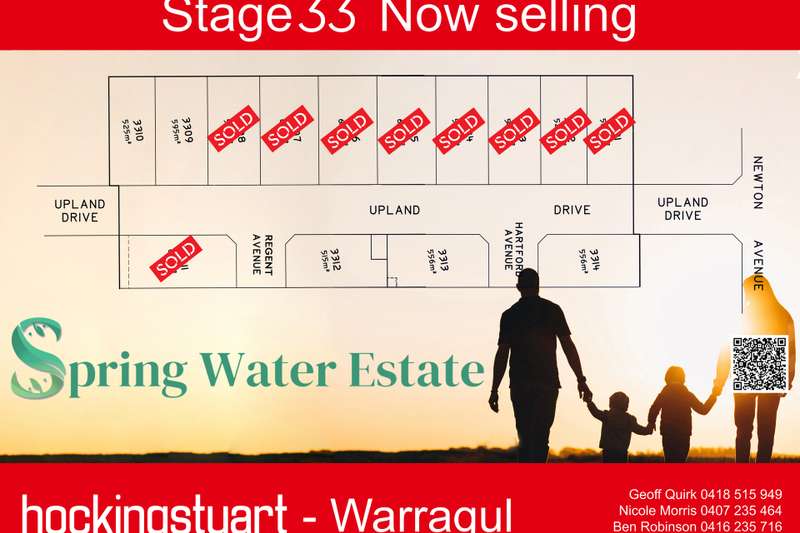 Occupying an elevated position with a relaxing scenic outlook, this excellent residential Stage 33 release forms part of the exciting new Spring Water Estate setting a benchmark in lifestyle living. Presenting as a favourable option when considering the address of your next home, the allotments being offered for sale are complete with boundary fencing and a level building site. Build with confidence on these sizeable and quality allotments with protective covenants and the availability of all town services including decorative street lighting and underground power. Boasting excellent access to freeway, Warragul and Drouin townships, these appealing residential allotments represent terrific value and an opportunity not to be passed up.