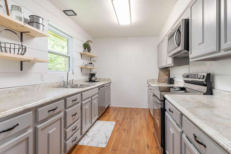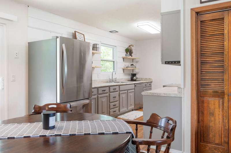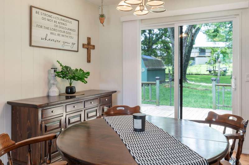 This beautifully maintained, charming updated 3-bedroom, 2-bathroom ranch-style home offers the ease of single-level living with the bonus of a second living area. NEW ROOF!!Nestled in a quiet, friendly neighborhood just minutes from Lake Taneycomo and Bull Shoalsand only 2 miles from Forsythyou'll enjoy the best of small-town tranquility with Branson's entertainment and amenities just 12 scenic miles away. Step inside to discover a host of updates: updated kitchen countertops, sink, and hardware, fresh interior paint, and a fully remodeled bathroom. Additional highlights include newer windows, roof and gutters, gleaming wood floors, and a cozy wood-burning fireplace in the main living roomperfect for relaxing evenings at home. Outdoor living is just as inviting with a private back deck and patio, a spacious fenced yard with mature landscaping, and plenty of room for pets, gardening, or enjoying the peaceful surroundings. Whether you're searching for a full-time residence, vacation getaway, or serene retreat near the lakes, this move-in-ready gem checks all the boxes. Come see it in personyou won't want to miss this opportunity!