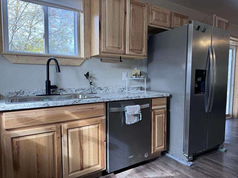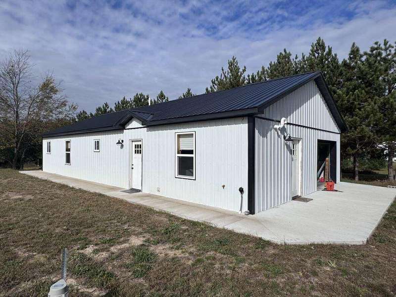 Unique barndominium offering modern comfort and energy efficiency on just over an acre of land! Enjoy sitting on the wrap around concrete porch. This well-built home features in-floor radiant heat for cozy year-round warmth, excellent insulation, and a durable metal roof for low-maintenance living. Large windows fill the space with natural light, creating a bright and inviting atmosphere. The on-demand water heater provides convenience and efficiency. Enjoy the charm of country living with modern amenities.