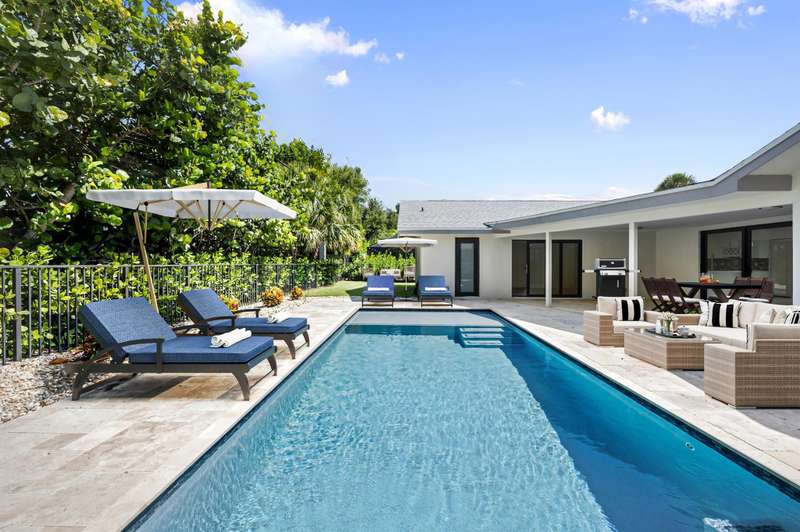Discover unparalleled luxury in the highly sought-after Hidden Key - Gated and No HOA - neighborhood, where serene living meets the convenience of a prime location. Perfectly nestled across from the Intracoastal Waterway and just moments from pristine beaches, this pool home offers the ultimate Florida lifestyle. With shopping, dining, and the renowned JD McArthur State Park just around the corner, you're at the heart of it all. Step inside this beautifully updated residence and prepare to be impressed. A brand-new roof crowns the home, while impact doors and windows provide both safety and style. The centerpiece of the home is the expansive gourmet kitchen, reimagined with sleek stainless steel appliances, stunning quartz countertops, and ample space to fuel your culinary creativity.