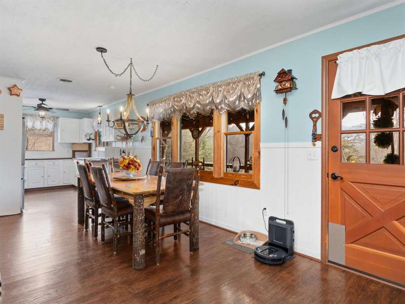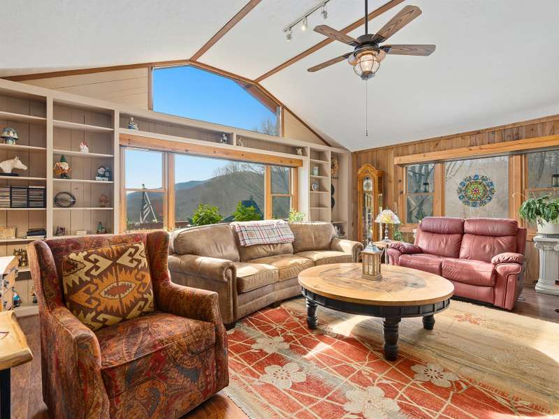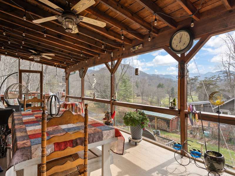 Nestled high in the exclusive Springdale Country Club in Cruso, North Carolina, this mountain retreat sits above the historic 18-hole golf course with year-round, long-range views of Cold Mountain and the Blue Ridge Mountains. Wrapped in warm wood siding, the home's wall of glass frame sweeping vistas of sunrise mists, brilliant fall color, and snow-dusted ridges. Inside, a vaulted great room features a floor-to-ceiling stone fireplace with gas logs and custom built-ins that showcase the endless mountain panorama. The light-filled kitchen with pantry flows seamlessly into the dining area, perfect for meals with a view. Primary suite on main level with additional guest bedroom and guest bath and laundry, offer effortless one-level living. The spacious lower level includes a family room, an additional en-suite bedroom, and a single-car garage. Outdoor living shines on the expansive screened covered/open deck?ideal for morning coffee or evening wine as hawks circle and the sun slips behind lavender ridges. A fenced rear yard nestled among flower beds provides safe play space. Served by community water/sewer with Viasat or Skyrunner internet available, the home is minutes from the Blue Ridge Parkway, downtown Waynesville's shops and breweries, and Great Smoky Mountains National Park. More than a house, it's a front-row seat to nature's daily show, paired with a pristine mountain golf lifestyle. **Springdale's championship golf course and community amenities include a heated outdoor pool, year-round hot tub, modern fitness center, putting green, and on-site massage therapy. After a round, Rocky Face Tavern serves local trout, sorghum-glazed pork chops, and craft cocktails on its stone terrace under caf? lights. Membership requires a one-time $5,000 initiation fee.