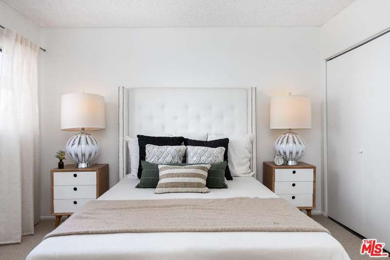 Welcome to La Belle Chateau, a Bright & Stylish Retreat in the Heart of Valley Village! This charming west-facing 1-bedroom + loft, 2-bath townhouse-style condo offers the perfect blend of comfort, function, and location. Featuring soaring 9+ ft ceilings, a cozy fireplace, and an open-concept layout, this home is bathed in natural light from floor-to-ceiling windows adorned with elegant plantation shutters. Enjoy your morning coffee on the adjoining private balcony equipped with a remote-controlled retractable awning, ideal for soaking in the golden afternoon light. The main level includes a spacious primary bedroom and a full bath, while the upstairs loft complete with its own powder room makes a perfect home office or guest sleeping area. The unit has been freshly painted and upgraded with new carpeting and luxury vinyl plank flooring throughout, offering a clean and modern canvas for its next owner. The kitchen boasts new quartz countertops and newer stainless appliances including a built-in microwave, oven, and range perfect for cooking and entertaining. Community amenities include a sparkling pool, gated parking, laundry facilities, controlled access with 24-hour security cameras, and private storage. Plus, La Belle Chateau is pet-friendly! Located minutes from local favorites like Jon's, Gelson's, Starbucks, Hugo's, Harvest Moon Kitchen and close to the Chandler Bike Path, Studio City Farmer's Market, NoHo Arts District, and easy access to the 101 & 170 freeways this home truly has it all. Style. Space. Location. Light. Welcome home!