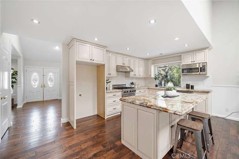 Nestled in the highly sought-after neighborhood of Parkside Estates in the heart of Fountain Valley, just steps from Mile Square Park and Golf, this stunning single-story gem offers an exceptional blend of elegance, comfort, and modern upgrades. Boasting over 1,550 square feet of living space with soaring vaulted ceilings that create an even more expansive and airy feel, complemented by dual-pane windows and skylights that flood the home with natural light. This meticulously maintained residence features central A/C, new interior and exterior paint, engineered hardwood floors throughout, newer Viking appliances, low maintenance backyard with putting green and large gated RV driveway. The impressive curb appeal welcomes you with a lush front lawn and a charming covered entryway leading into a grand living room. Enjoy hosting family and friends in your separate formal dining room. While the chef's kitchen is an absolute showstopper--featuring granite countertops, subway tile backsplash, recessed lighting, a Viking 5-burner gas cooktop, vent hood, Viking dishwasher, and custom self-closing drawers, all centered around a long kitchen island. The kitchen seamlessly flows into an inviting family room with rich wood flooring, a dramatic cathedral ceiling with cozy fireplace, and sliding glass doors that open to a backyard oasis--complete with a covered patio, built-in BBQ with gas firepit, block wall fencing for privacy, putting green, and fruit trees, making it ideal for entertaining, family gatherings, or serene relaxation. The luxurious primary suite is a private retreat, boasting a cathedral ceiling, mirrored wardrobe and direct access to the backyard. Two additional spacious bedrooms, an upgraded guest bathroom with pedestal vanity and tub/shower combo. The direct-access garage is newly painted and provides ample storage. All of this, plus award-winning schools, a short drive to the beach, shopping, dining, and easy freeway access--this is Southern California living at its finest!