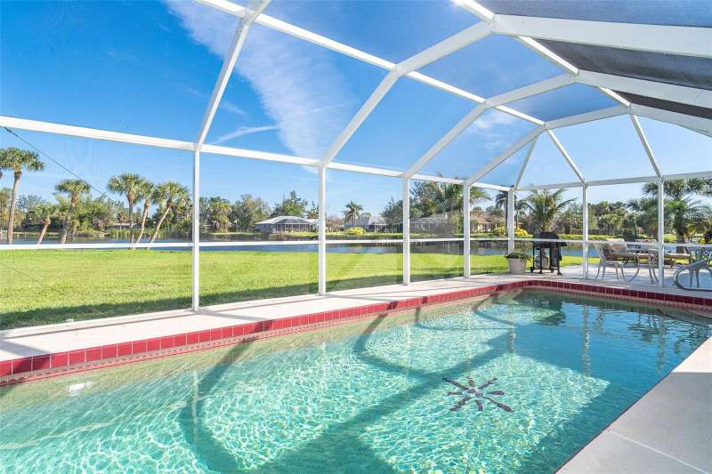 RARE FIND — LAKEFRONT PARADISE IN ENGLEWOOD – No HOA | Peaceful Living | Stunning Views Welcome to your own private retreat on nearly an acre of lakefront bliss! This beautiful 3-bedroom, 2-bathroom home sits on a spacious 0.845-acre lot with 190 feet of serene waterfront, offering breathtaking panoramic lake views and a peaceful connection with nature. Nestled at the end of a quiet dead-end street, this property is a rare find where privacy, beauty, and convenience all come together. Key Features: • Expansive Outdoor Living: Relax or entertain in the large screened lanai overlooking the shimmering lake, complete with a refreshing swimming pool—perfect for soaking in the tranquil Florida lifestyle. • Open Floor Plan: The open design showcases stunning water views from the kitchen, dining area, and great room. The updated kitchen features white cabinetry and Wilsonart® High Definition countertops, while the great room’s gas fireplace adds warmth and charm on cool evenings. • New Roof (2022): Enjoy peace of mind with a cement block construction home and underground utilities. • Nature Lover’s Dream: Watch eagles, herons, and other wildlife from your porch swing beneath a grand oak tree. The property is adorned with mature landscaping and fruit trees, including mango, avocado, and coconut. • Private Launch Pad: Cast a line for bass in the stocked freshwater lake (no tidal water!) or paddle out and enjoy the serenity of your natural surroundings. • Workshop & Shed: Perfect for storage, hobbies, or projects. • Prime Location: Take a golf cart, bike, or walk to Englewood’s historic Olde Village for shopping, dining, live music, and local charm. Just minutes away are Lemon Bay Park, pristine Gulf beaches, and the vibrant City of Venice. • No HOA Restrictions: Freedom to live your way—bring your boat, RV, or simply enjoy the peaceful lifestyle you’ve dreamed of. • Turnkey Option: Furniture is included, making your move to lakefront living easy and effortless. Don’t miss this rare opportunity to own a slice of paradise in Englewood—where nature abounds and every day feels like vacation. Schedule your private showing today!
