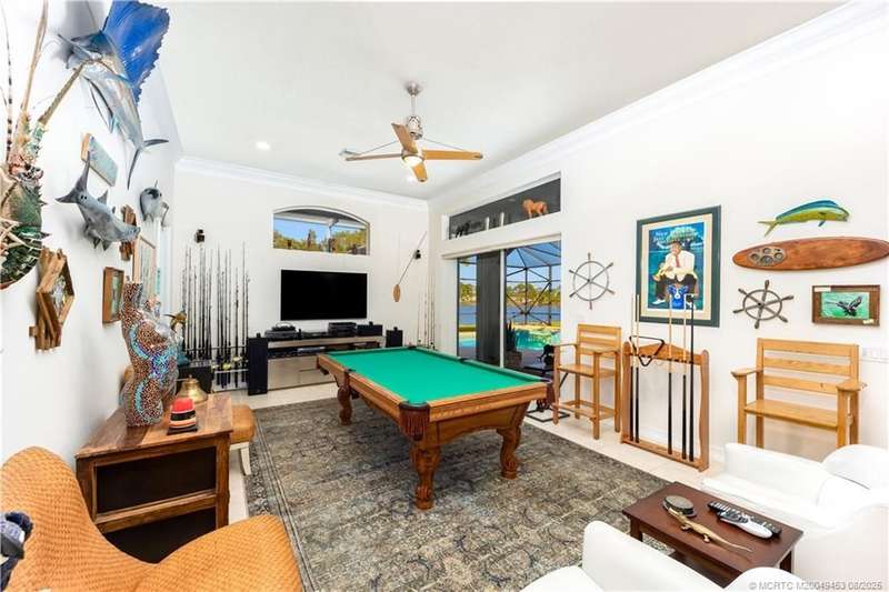 Discov?r a r?re gem ??n th? d?????r?ble Sandpiper B?y ??ommunity. This impeccably maintained 3165 SQ FT custom built Pool home features an open floorplan with 4 Bedrooms, 3 Bathrooms, and a spacious 1090 SQ FT 3 Car Garage, with 12' high x 10' wide center door. Perfect for your RV, Boat, or Car Lift. Set on a stunning .47 acre waterfront lot, enjoy breathtaking views of the island preserve and lake. Peace of mind with a NEW Metal Roof (Jan 2025), and two Lennox AC units (Dec 2024), and many more recent upgrades. The home features 12' ceilings with abundant natural light and greenery for a serene private atmosphere. The primary bedroom features a Hurricane/ Tornado SAFEROOM closet, while guest bedrooms have extra large walk in closets. Relax in the GAS Heated Pool and Spa; add a dock, enjoy the view, go fishing. Embrace the coastal lifestyle, while enjoying easy access to beaches, highways, restaurants, and shopping. Please call for a complete list of home features.