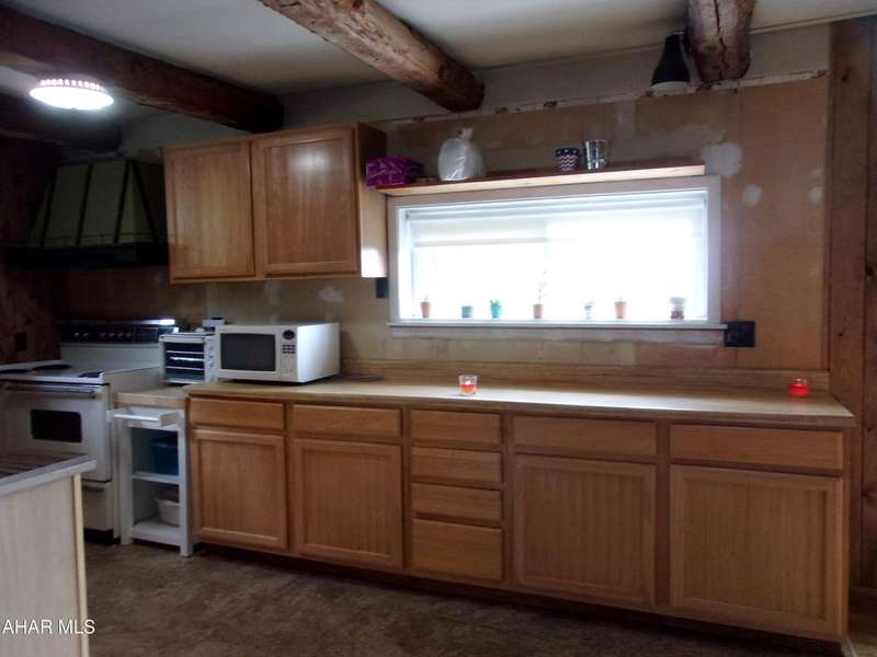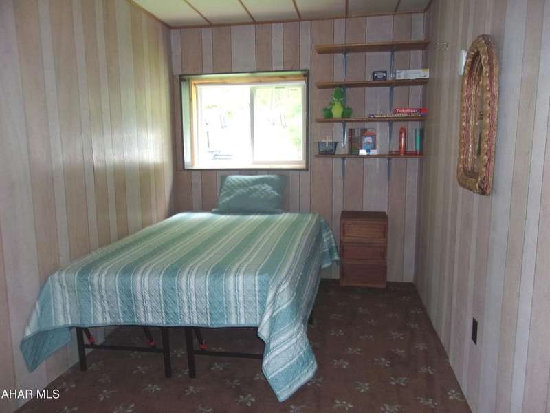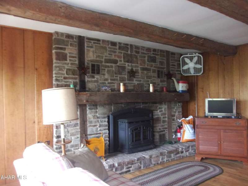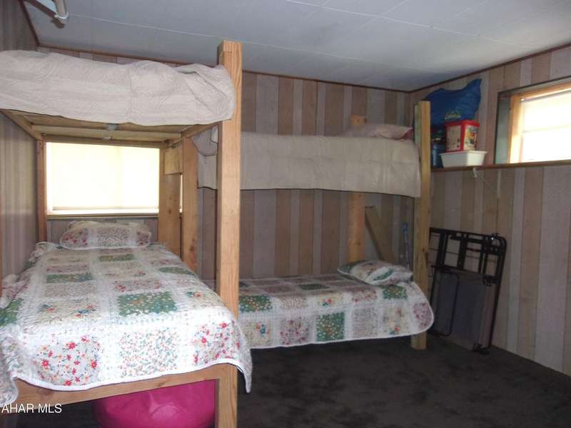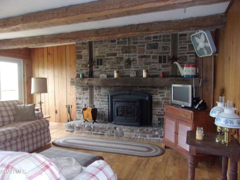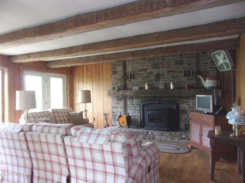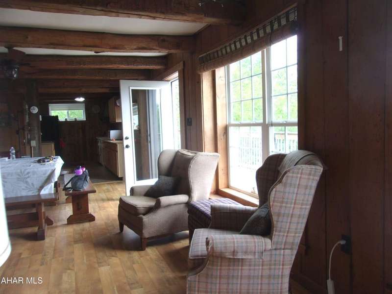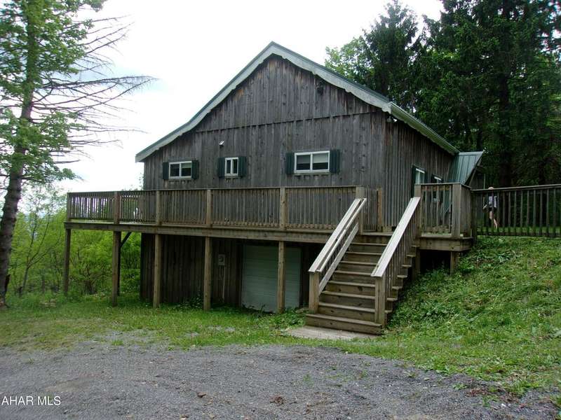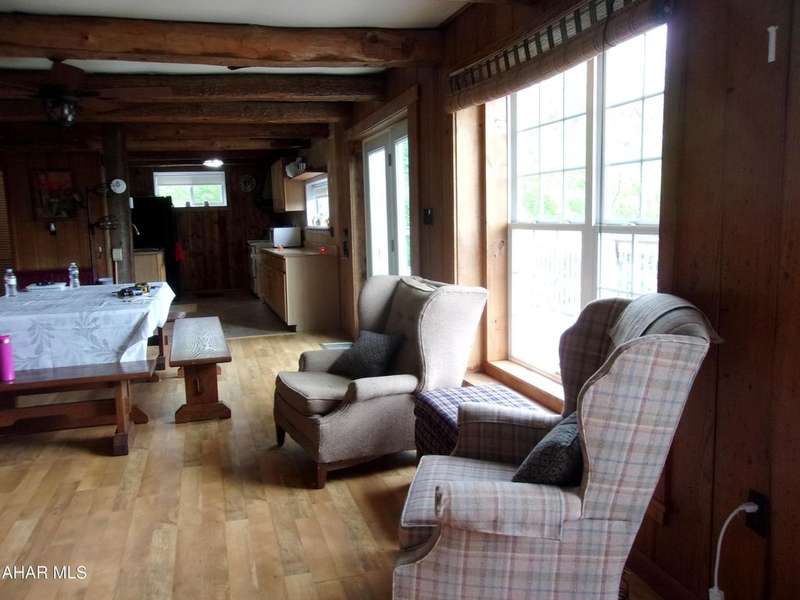 Open Concept Cabin on 18+ acres. Although it has a rustic feel, this 'cabin' is a 4 bedroom ranch with board and battin siding, a wrap around deck and outstanding views. The indoor vibe is comfy and relaxed, beckoning you to sit down, unwind and enjoy the quiet. Beamed ceilings and the stone fireplace complete that rustic cabin feel. Sit on the deck and soak in the surrounding nature. Four bedrooms make this a great gathering place for family and friends on weekends or vacations.