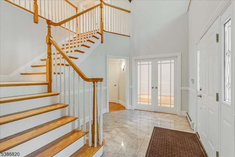 This stately Stonehedge Estates colonial features 4 bedrooms, 2.5 baths and an oversized 2-car garage. Nestled among mature trees on a 1.54-acre lot, this home is part of an inviting community offering privacy yet quick access to Rt. 23, making it one of the area's hidden treasures. Step inside to a welcoming two-story foyer that opens to a spacious living and dining room featuring hardwood floors with picture frame accents and extensive molding. The chef's kitchen will take your breath away with granite counters, center island, built-in refrigerator, and a professional-grade Viking range. The kitchen flows seamlessly through the breakfast area to the dramatic family room with two-story ceilings, abundant windows, and a wood-burning fireplace framed in black marble. The main level is completed by a private study with French doors. Upstairs, you will find a comfortable primary suite with a luxurious ensuite bath, sitting room, walk-in closet, and laundry facility. There are three additional generously sized bedrooms with large closets and hardwood floors. The expansive, finished walkout basement offers flexible living space and is already plumbed for a third full bath. The home has been freshly painted, inside and out. Set within one of the area's most desirable neighborhoods, this home offers the perfect balance of privacy, convenience, and elegance just 47 miles from Manhattan yet worlds away in its peaceful wooded setting.