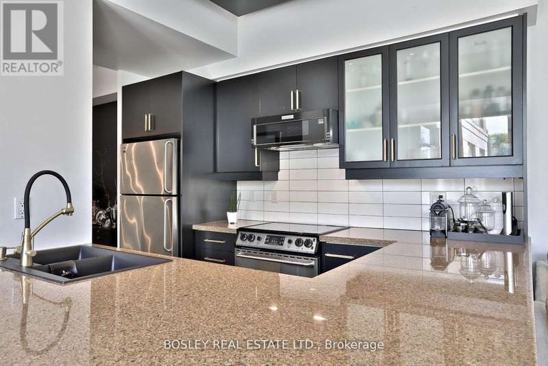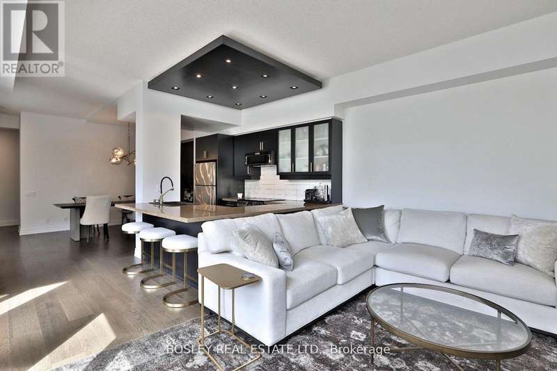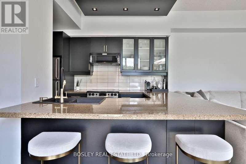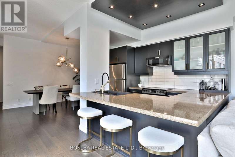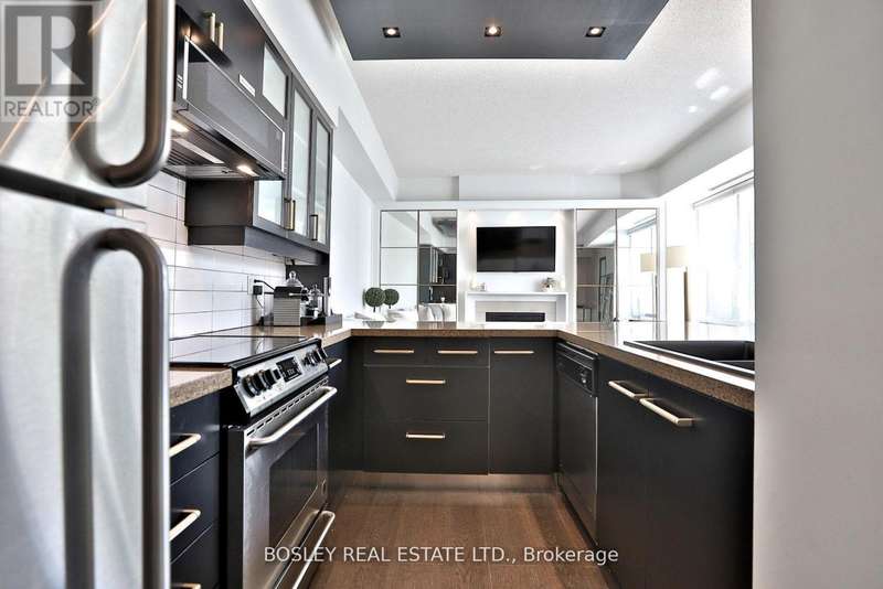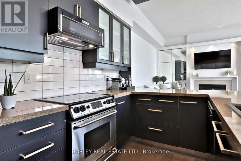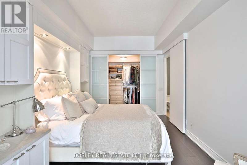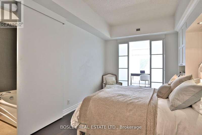 Sophisticated living at 500 Queens Quay. Situated just steps from the Lake and overlooking the Music Garden, Suite 208W is a generously-sized unit offering the best of city living, with easy access to transit, financial district, and the island airport. This well-appointed home features 10 foot ceilings and hardwood floors throughout. Open concept living space offers a great floor plan. The kitchen is a cook's delight with stone counters, breakfast bar, and walk-out to expansive 170 sq foot south facing terrace for warm weather entertaining. Spacious living room has a gas fireplace for cozy winter nights, built-in storage, and floor to ceiling windows overlooking the lake and large terrace. Large dining area with plenty of space for a dinner party. Custom California Closets organization throughout - tons of storage! Principal bedroom features built-ins, walk-in closet, and 4 piece ensuite. 2nd bedroom or den has Murphy bed for dual use. A great opportunity for the stylish urbanite!
