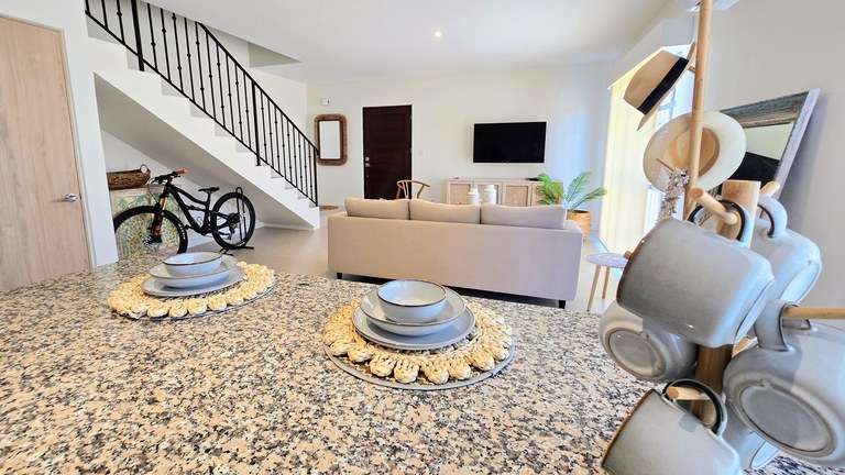 7521 Terraced Flats is a beautifully crafted 2-bedroom, 2.5-bathroom residence nestled in the heart of Las Catalinas, Costa Rica. This home blends thoughtful design with warm charm, offering a tranquil escape just steps from the vibrant town and beach. The main level welcomes you with a comfortable living and dining area ideal for both relaxation and entertaining. Upstairs, two well-appointed bedrooms provide privacy, comfort, and partial ocean views. With its efficient layout, cozy furnishings, and coveted location, 7521 is a perfect blend of lifestyle, functionality, and charm—ideal for a full-time residence, vacation retreat, or investment property.