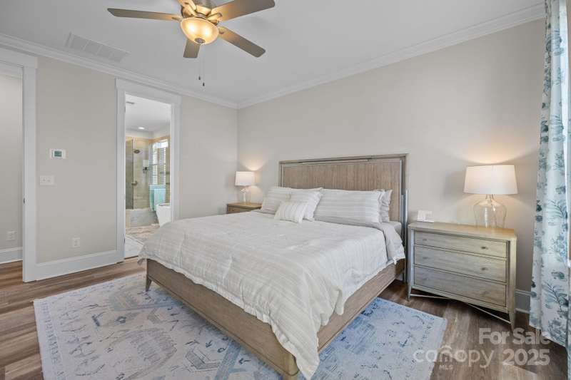 Picture perfect home in the desirable Riverwalk neighborhood. 4 BR/ 3.5BA with office/flex space and loft area. Open floor plan and neutral colors throughout make this home ready for you. Two bedrooms are ideal primary suites, one downstairs and one upstairs- great for guests or multi- generational living. Since everyone gathers in the kitchen this open chef's plan with extra large island is perfect . Elegant dining room for those special occasions Enjoy every Carolina season on the three covered porches, perfect for relaxing or entertaining. Mature landscaping and fencing provides privacy and curb appeal. Experience the active lifestyle of Riverwalk with sidewalks, walking/ bike trails, river launch , swimming pool , clubhouse ,greenspaces, shops, restaurants and community fire pits. Convenient to Charlotte commute, major roads, dining and shopping.