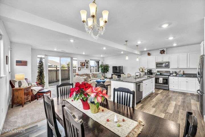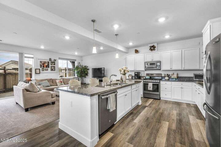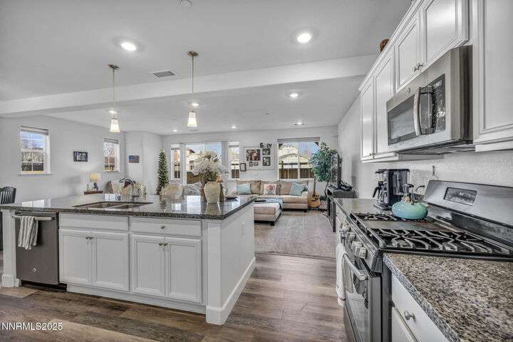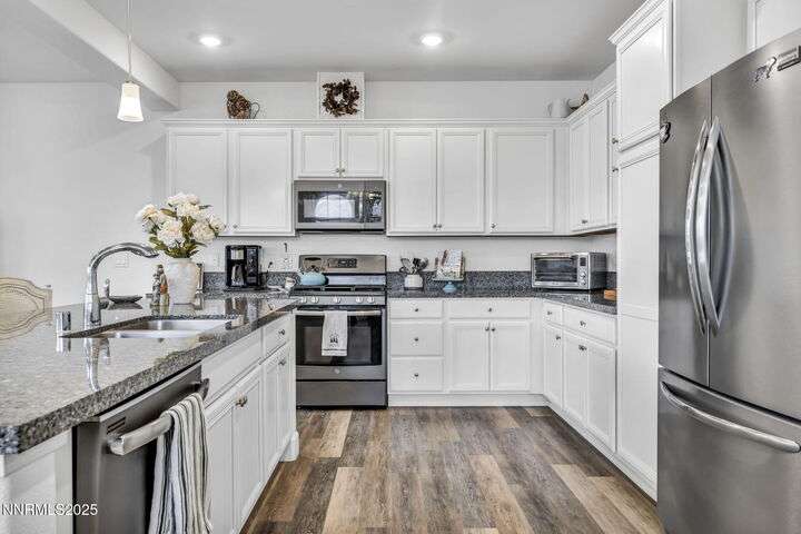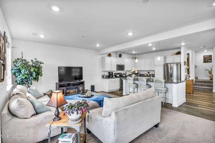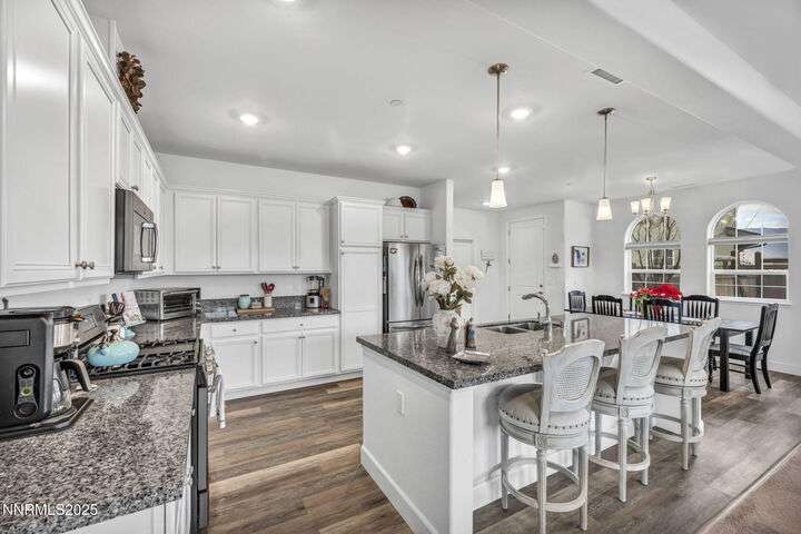 This gorgeous condo is like brand new, built in 2018, and meticulously maintained. Beautiful selections of warm and cool tones of LVP hard surface flooring, combined with cozy and clean carpets in the bedrooms, and tile in the bathrooms, welcome you to the bright and open floorplan. The cook's kitchen includes a gas range and granite countertops. The backyard is fully landscaped with grass and pavers, perfect for relaxing and enjoying the views of the surrounding Sierra and Pinenut Mountain Ranges!, HOA maintains the exterior of the home, so you can live with peace of mind, knowing your beautiful home will stay like new forever! Contact the listing agent for a private showing today.