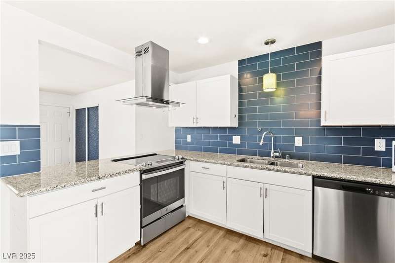 Tucked away on a peaceful cul-de-sac, this fully renovated home with a 3% VA assumable loan sits on a spacious pie-shaped lot offering ample parking and convenient RV gate access to the backyard. The outdoor space is perfect for entertaining, with a covered patio and plenty of room for a pool. Inside, the open-concept kitchen, dining, and living area flows effortlessly, highlighted by luxury vinyl plank flooring and modern finishes. The kitchen features granite counters, stainless steel appliances, white cabinetry, and a stylish backsplash. Three well-appointed bedrooms and upgraded bathrooms provide comfort, while ceiling fans throughout add convenience and style. The renovation also included a new roof, AC, electrical, and plumbing. Ideally located within walking distance to shopping and with easy freeway access for a short commute to Downtown and Summerlin, this turnkey home offers both comfort and convenience.