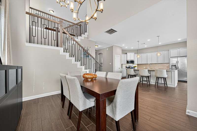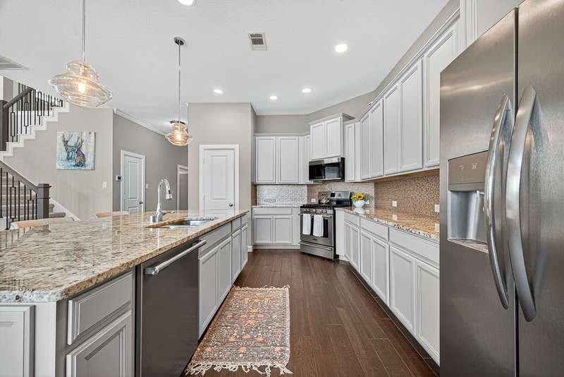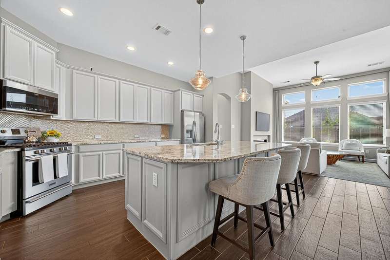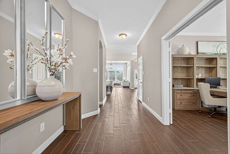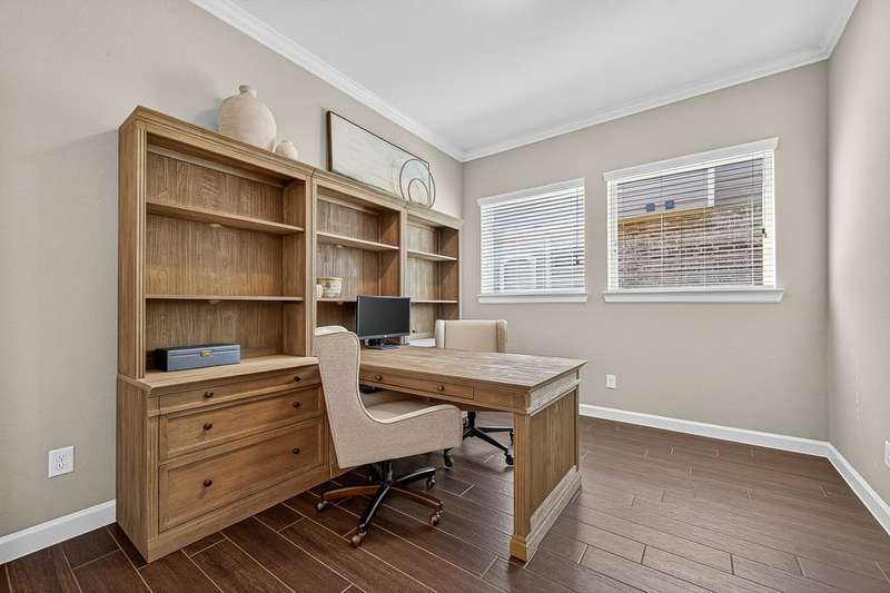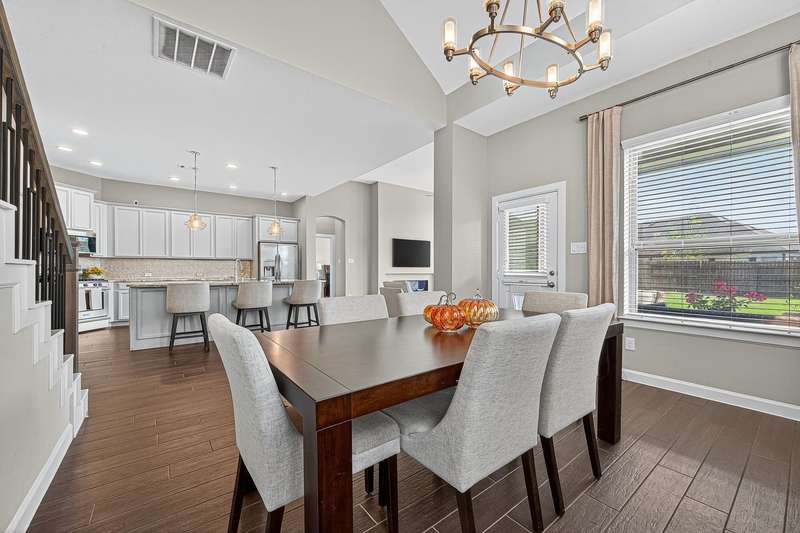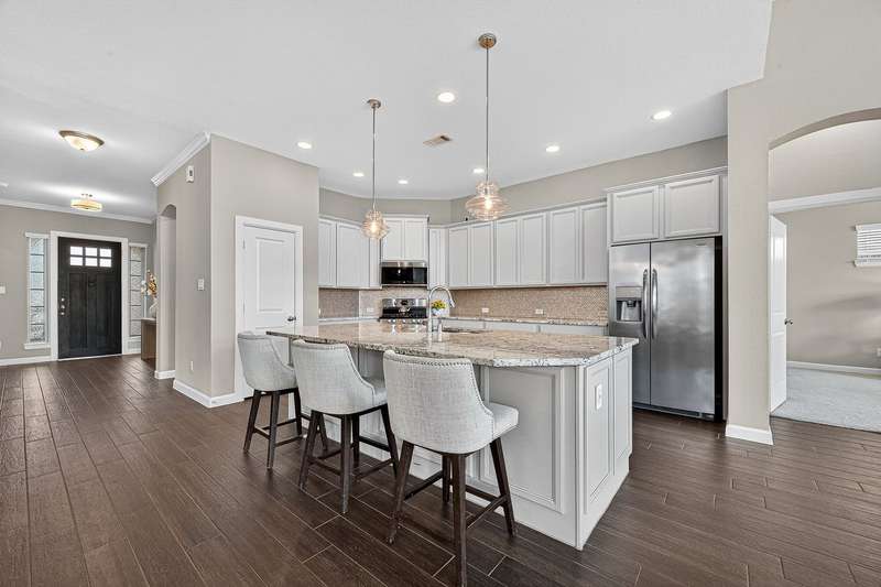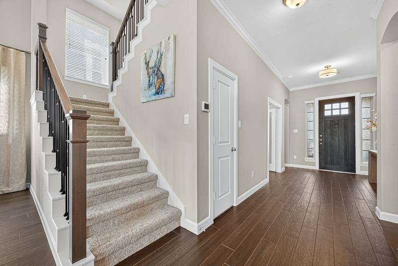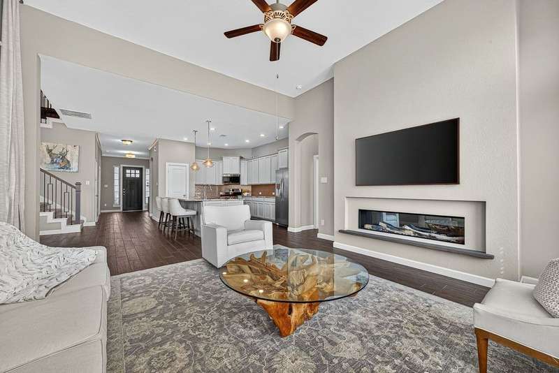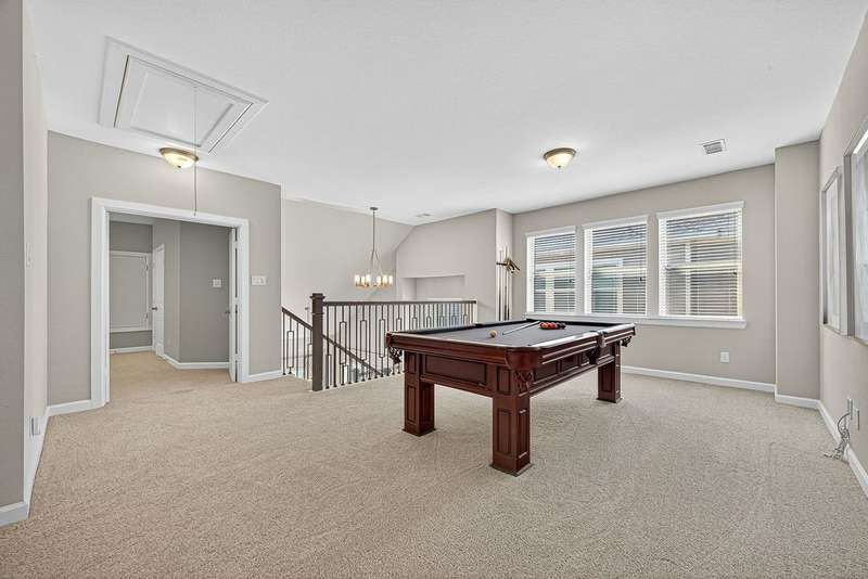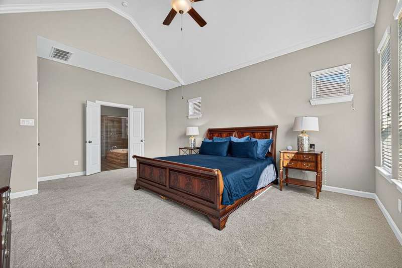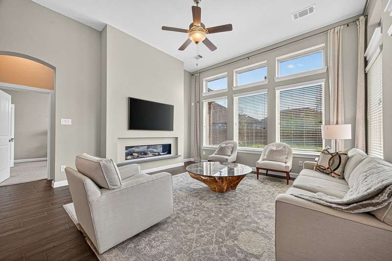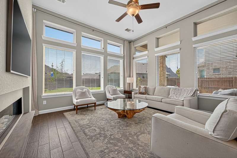 Step into this beautiful David Weekley 2-story home! Rare second bedroom downstairs with its own full bath. Work from home in style with a private study behind glass French doors. The gourmet kitchen shines with custom cabinets, designer backsplash, stainless Frigidaire appliances , and a massive island that anchors the open layout. Kitchen, dining, and living spaces flow together seamlessly perfect for gatherings. The spacious primary suite offers a SPA-like bath with soaking tub, separate shower, and an oversized walk-in closet. Upstairs, enjoy a large game room PLUS a fully equipped media room ready for movie nights. Two additional bedrooms, both with walk-in closets, provide plenty of space and storage. Out back, relax on the covered patio or design your dream outdoor retreat the pool-sized yard is ready for it. Living in Veranda means access to trails, parks, pool, rec center, community events, and all the charm of small-town Richmond living