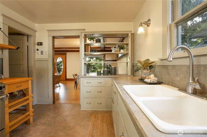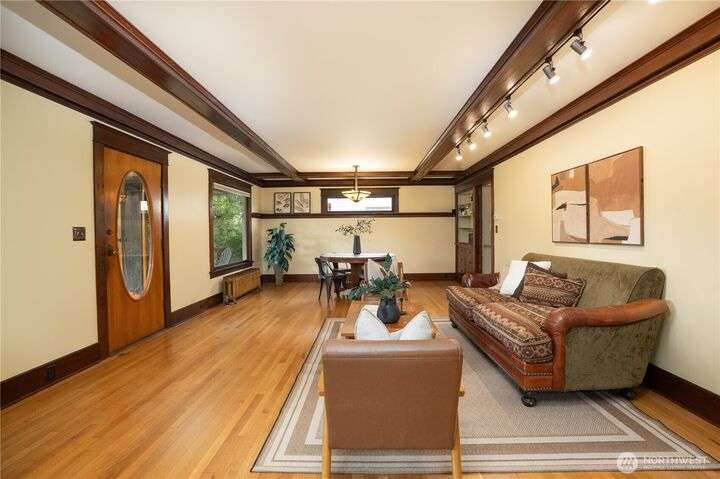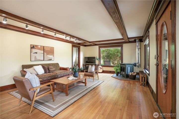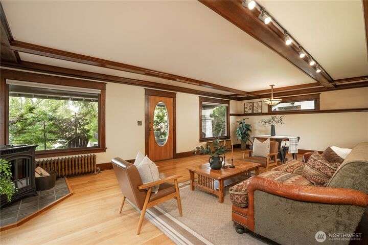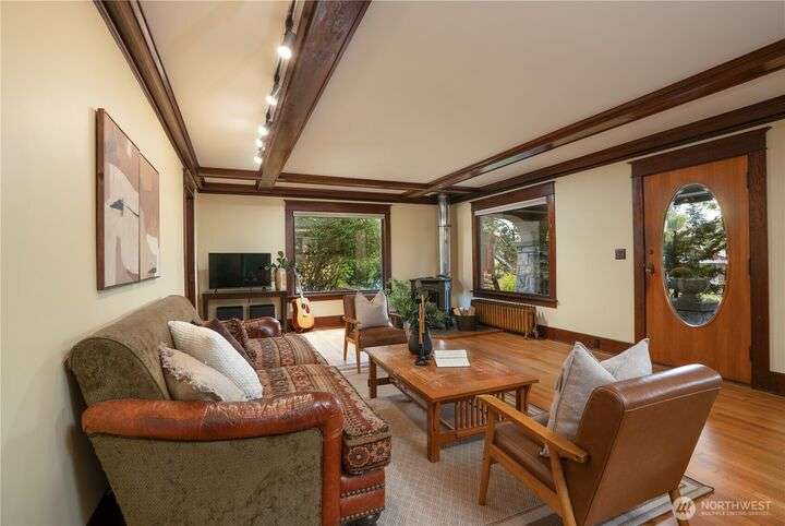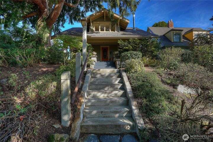 Ideally located near the heart of Proctor District & just steps from coffee shops, dining, boutiques & cultural hotspots this home is perfect N Tacoma living! This Craftsman's wide front porch invites you to come & sit awhile. Beautiful front door draws you in & the original woodwork, plate rail, & box-beam ceiling says this is HOME. Kitchen floor is Marmoleum. Refinished hardwood & fir floors + stairs. Enjoy an abundance of natural light from the Half-moon windows gracing two bedrooms. Lovely backyd with room for gardening or playing. Plumbing & electrical have been updated; newer sewer line & water line for worry-free living. Originally built as a studio, the newer garage with EV charging has additional parking on parking pad. Charming!