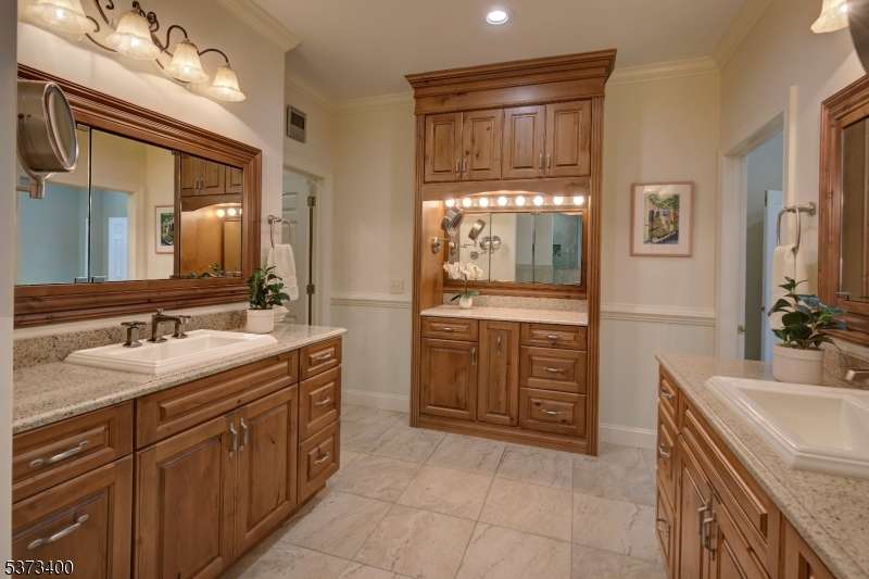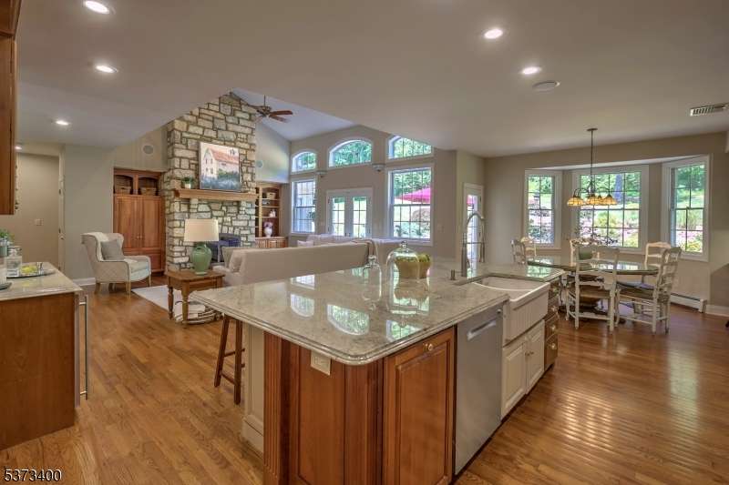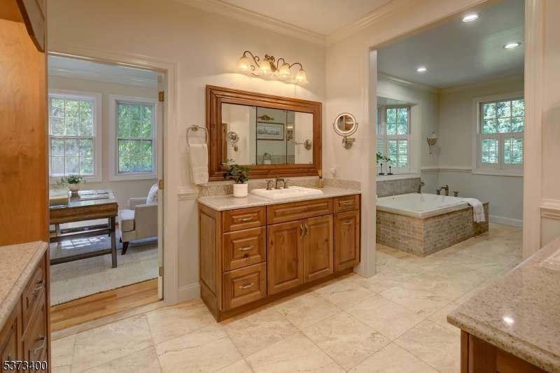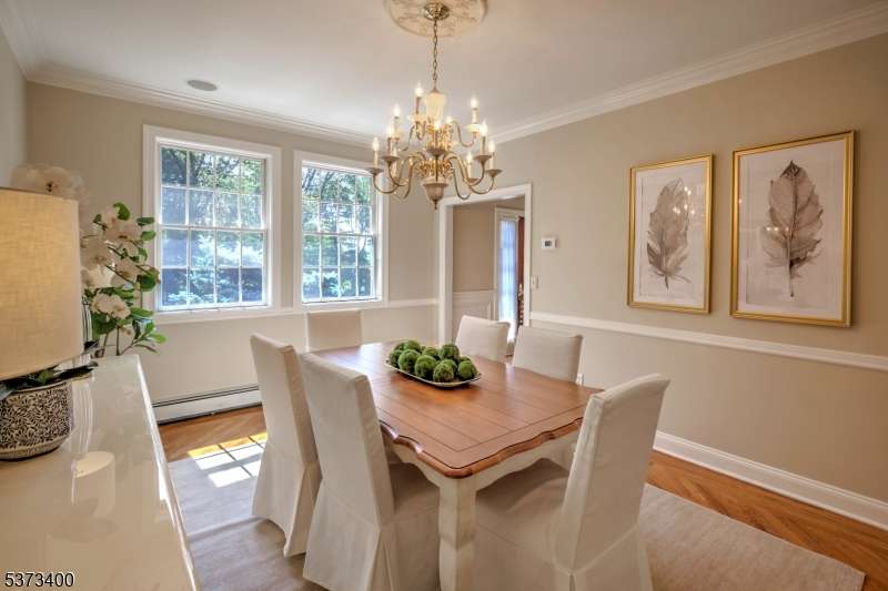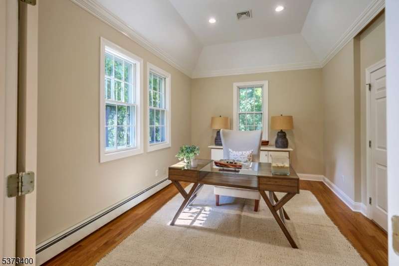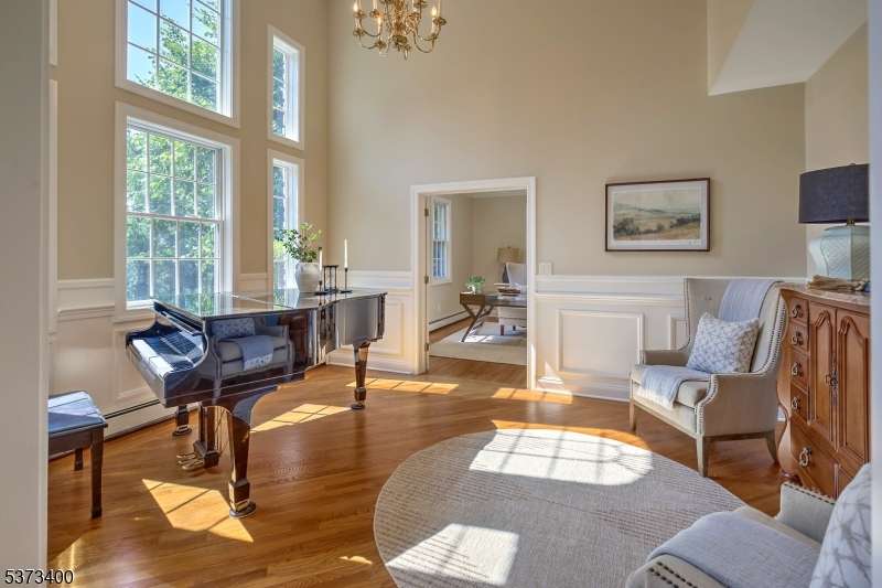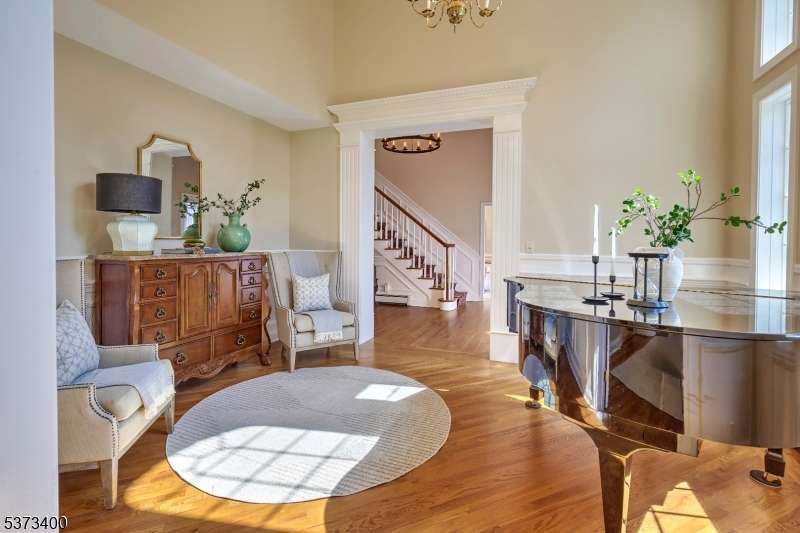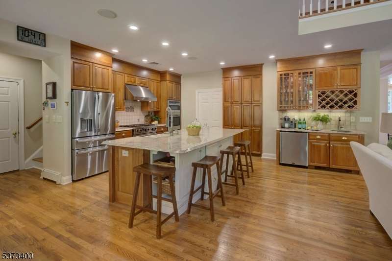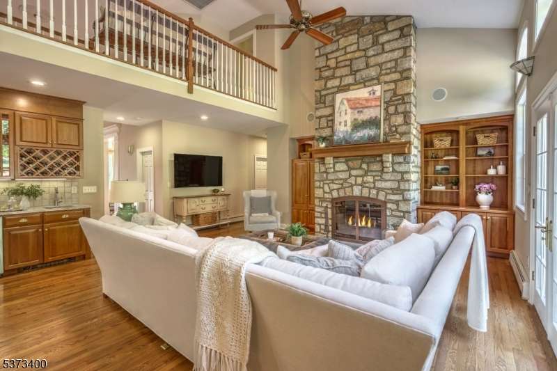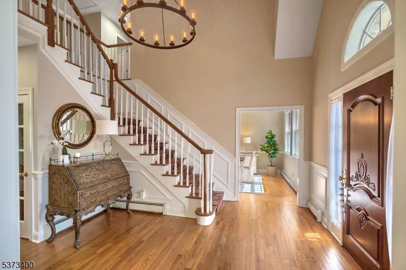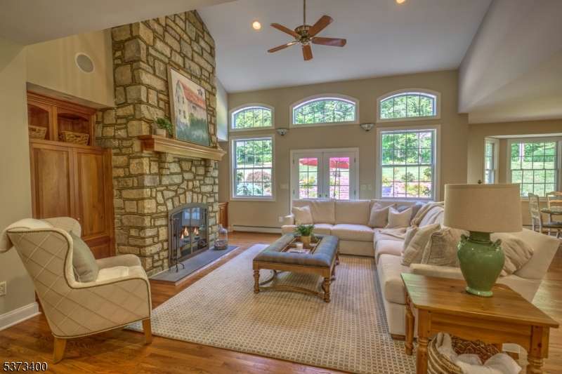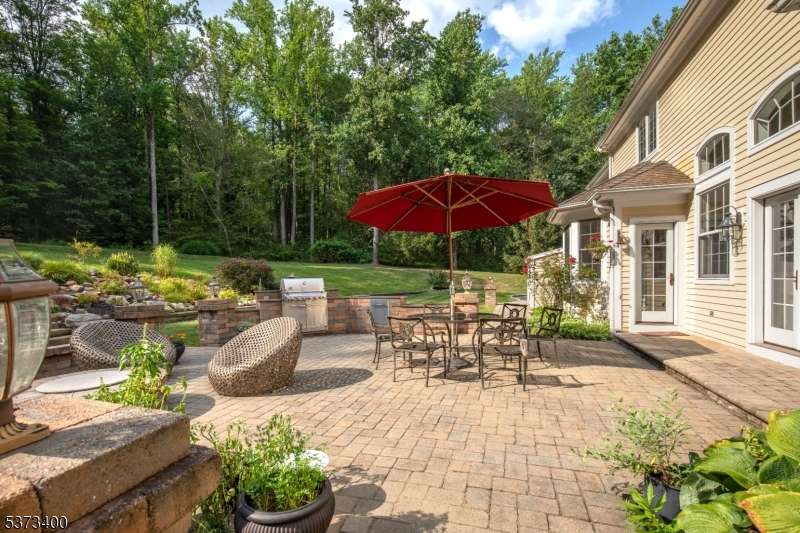 Elegant Custom Colonial in Harding Township Welcome to a stately custom Colonial nestled atop a gentle rise in sought-after Harding Township, known for its top-rated schools and close proximity to major commuting routes. With timeless architecture and a thoughtfully designed layout, this five-bedroom, four-and-a-half-bath residence combines luxury and functionality. A sophisticated interior designed with soaring ceilings and exquisite millwork lend character to every room. The elegant formal entrance foyer reveals sightlines into stylish living and dining rooms. At the heart of the home is a gourmet eat-in kitchen outfitted with premium appliances, custom cabinetry, an expansive pantry and a generous island. Opening from the kitchen is a two-story family room where the focal point is a floor-to-ceiling stone fireplace flanked by custom cabinetry. A convenient service bar with sink and beverage refrigerator is an added convenience. Walls of windows and French doors connect both the kitchen and family room to an entertainment-friendly patio and park-like yard. Another highlight is a spacious first-floor primary suite featuring a spa-like bath with radiant heat floors for ultimate comfort. Upstairs, four oversized bedrooms include two en-suite layouts and two bedrooms sharing a hall bath. The lower level provides even more gathering areas with a bar, media and recreation spaces as well as ample storage options. Step outside to beautifully landscaped gardens and a walled paver patio, where the built-in grill and custom fire pit create a perfect backdrop for al-fresco dining and warm weather enjoyment. This colonial is a rare offering in a highly desirable Morris County community, combining refined living spaces and everyday ease. Don't miss the opportunity to make it yours.