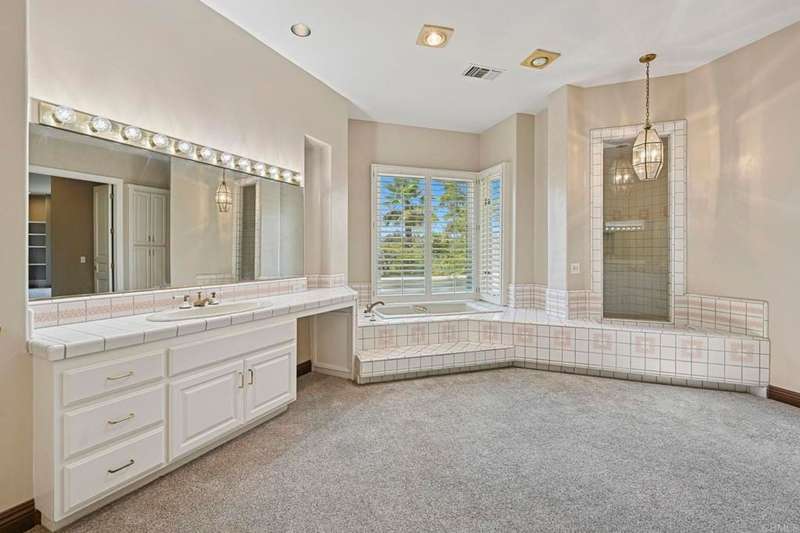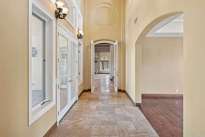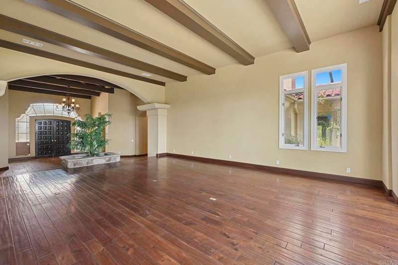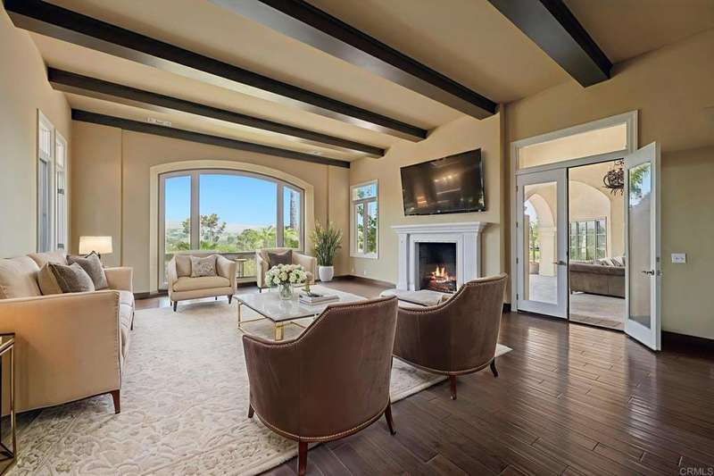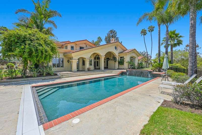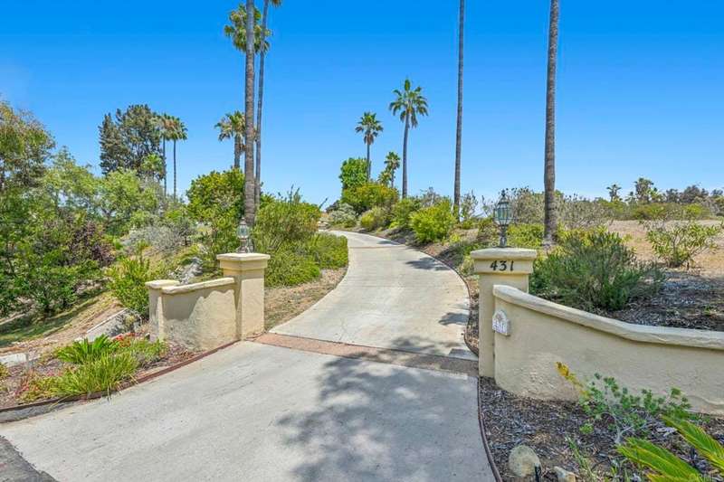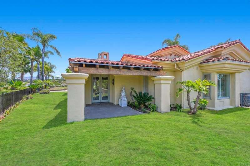 Discover this spacious 6,800 sq. ft., 5-bedroom, 6-bath gated masterpiece set on over 3 acres of pristine land. Perched atop a hill in South Pointe Farms, this residence offers breathtaking panoramic views from every vantage point. The tropical landscaping creates a private, park-like oasis, framing a sparkling pool and spa, expansive paver patios, and inviting outdoor spaces perfect for entertaining. While the mostly single-level layout includes two bedroom suites and guest quarters on the main level. Upstairs, find two additional bedrooms and a versatile bonus room (optional bedroom). A rare blend of privacy and sweeping vistas in the heart of Rancho Santa Fe.