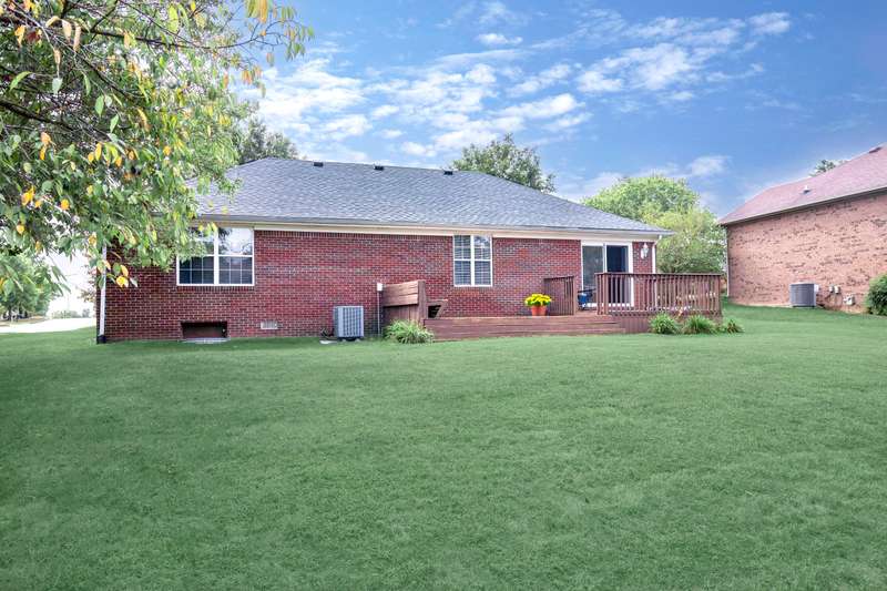 Charming all-brick ranch with vaulted ceilings & spacious yard! This beautifully maintained all-brick, ranch-style home offers 3 bedrooms and 2 full bathrooms, perfect for comfortable, single-level living. Step inside to a large family room with soaring vaulted ceilings, creating an open and airy space for entertaining or relaxing. The spacious primary suite is a true retreat, featuring a stylish shiplap accent wall and plenty of natural light. The oversized 2-car garage provides ample storage or workspace. Enjoy outdoor living on the deck overlooking a nicely landscaped yard, ideal for gatherings or quiet evenings. Don't miss this solid, move-in ready gem! Sellers just recently replaced the roof!