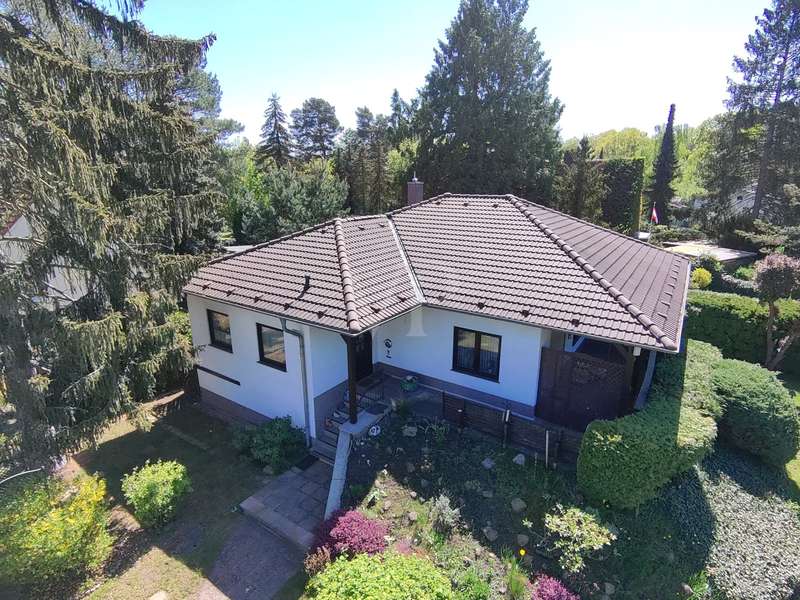 Welcome to your new home! This solidly built detached house impresses with its well thought-out room layout, its furnishings and a generous plot of approx. 753 m² - a perfect retreat for families or couples. The house has four spacious rooms and offers plenty of room for individual design options. The open-plan kitchen with fitted kitchen invites you to cook and enjoy together. A guest WC provides additional comfort, while the shower and bath invite you to relax. The modern condensing boiler from 2008 provides efficient heating for the house. In addition, a new circulation pump was installed in 2025 and all radiators and heating valves were checked - for a pleasant living climate all year round. Electric shutters with a timer not only offer convenience, but also security. In addition to the heated full basement with two rooms that can be used for living purposes, which is also ideal for use as a hobby room or storage space, the house has a practical underground garage - so your vehicle remains protected even in winter. The covered terrace of approx. 14 m² invites you to spend relaxing hours outdoors, while the lovingly landscaped garden with its own well and integrated irrigation network ensures effortless maintenance. An additional metal tool shed offers further storage space for garden tools and bicycles. The installed alarm system provides additional protection for peace of mind. Enjoy a quiet and safe home that gives you a sense of security and quality of life. Experience this special family home for yourself and be inspired by its charm. Arrange a viewing appointment today!